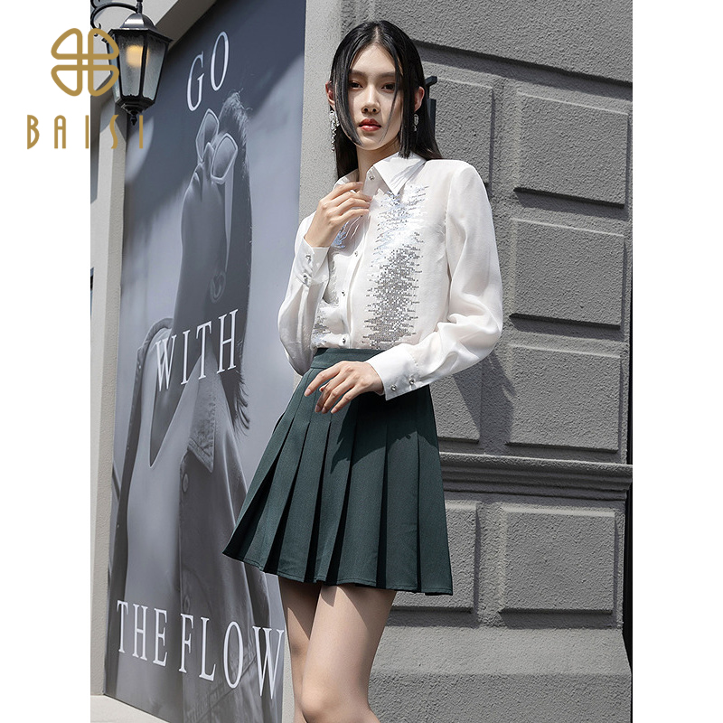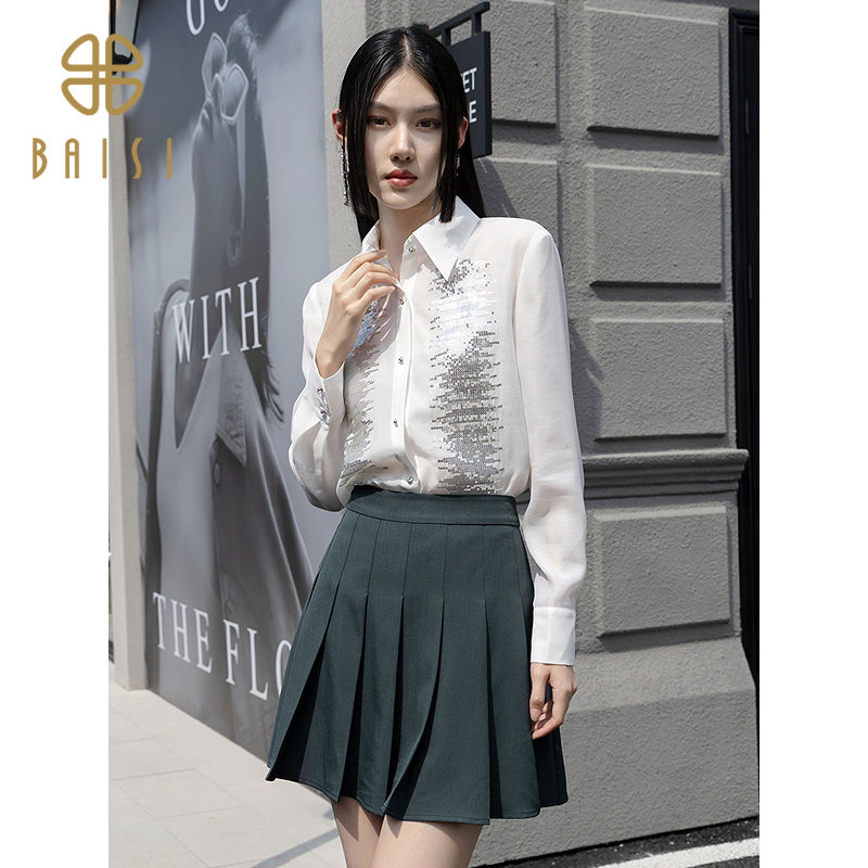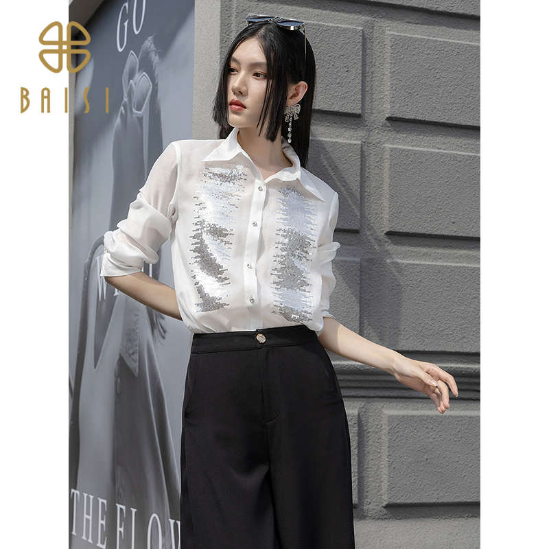 衬衫 2025秋季 闪片直身上衣日常通勤穿搭长袖 百丝设计感时尚 女 新品