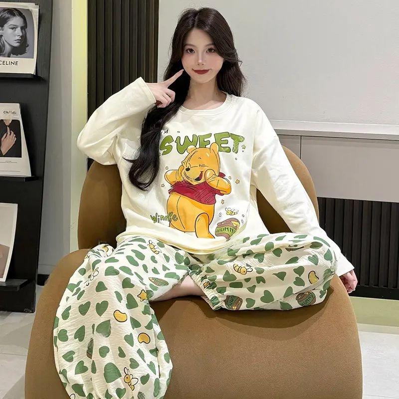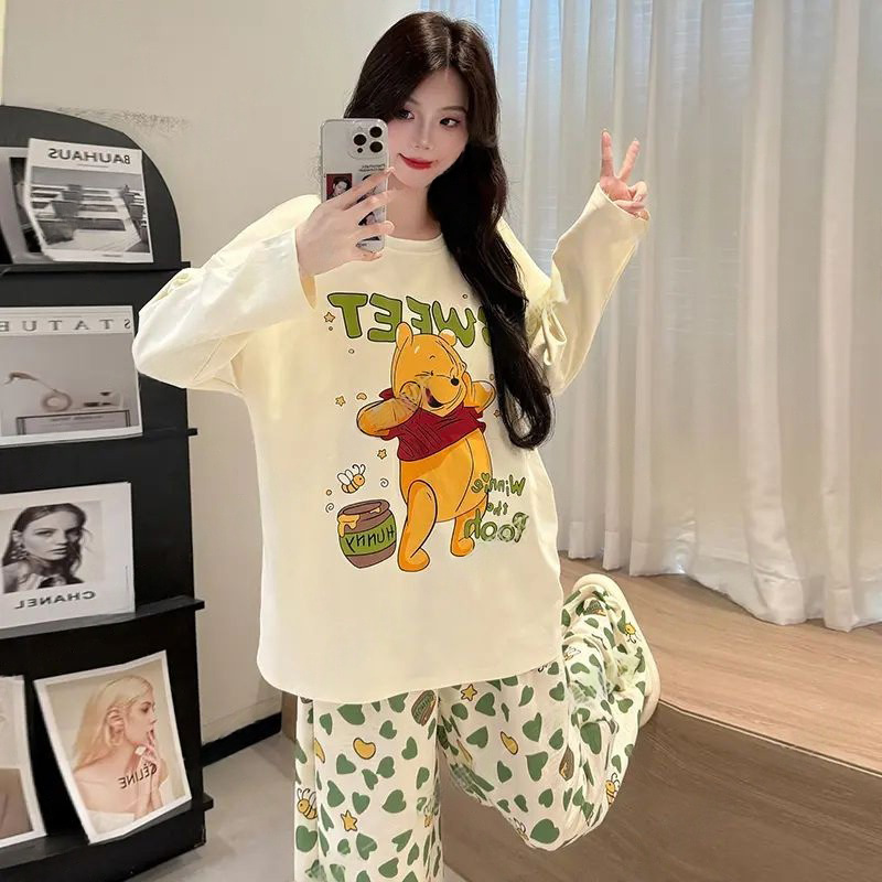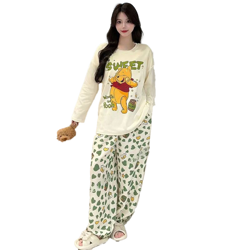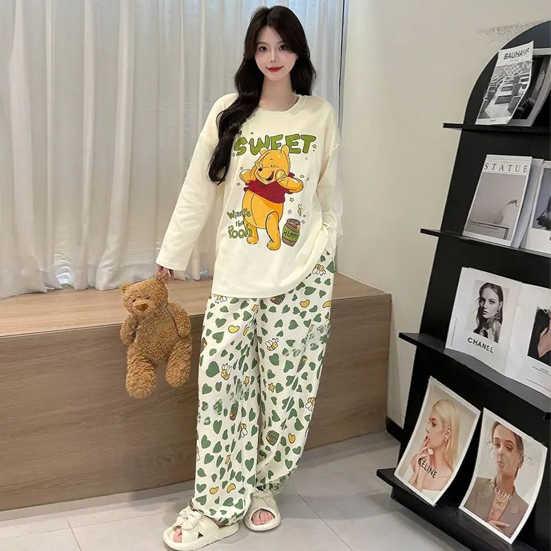 2025新款 棉绸长袖 女士卡通可爱家居服可外穿 春秋季 带胸垫睡衣女款