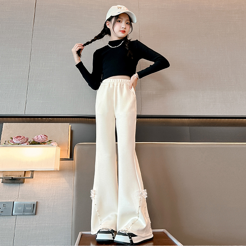 中大童针织弹力裤 女童裤 儿童黑色喇叭裤 2025新款 子春秋微喇叭裤