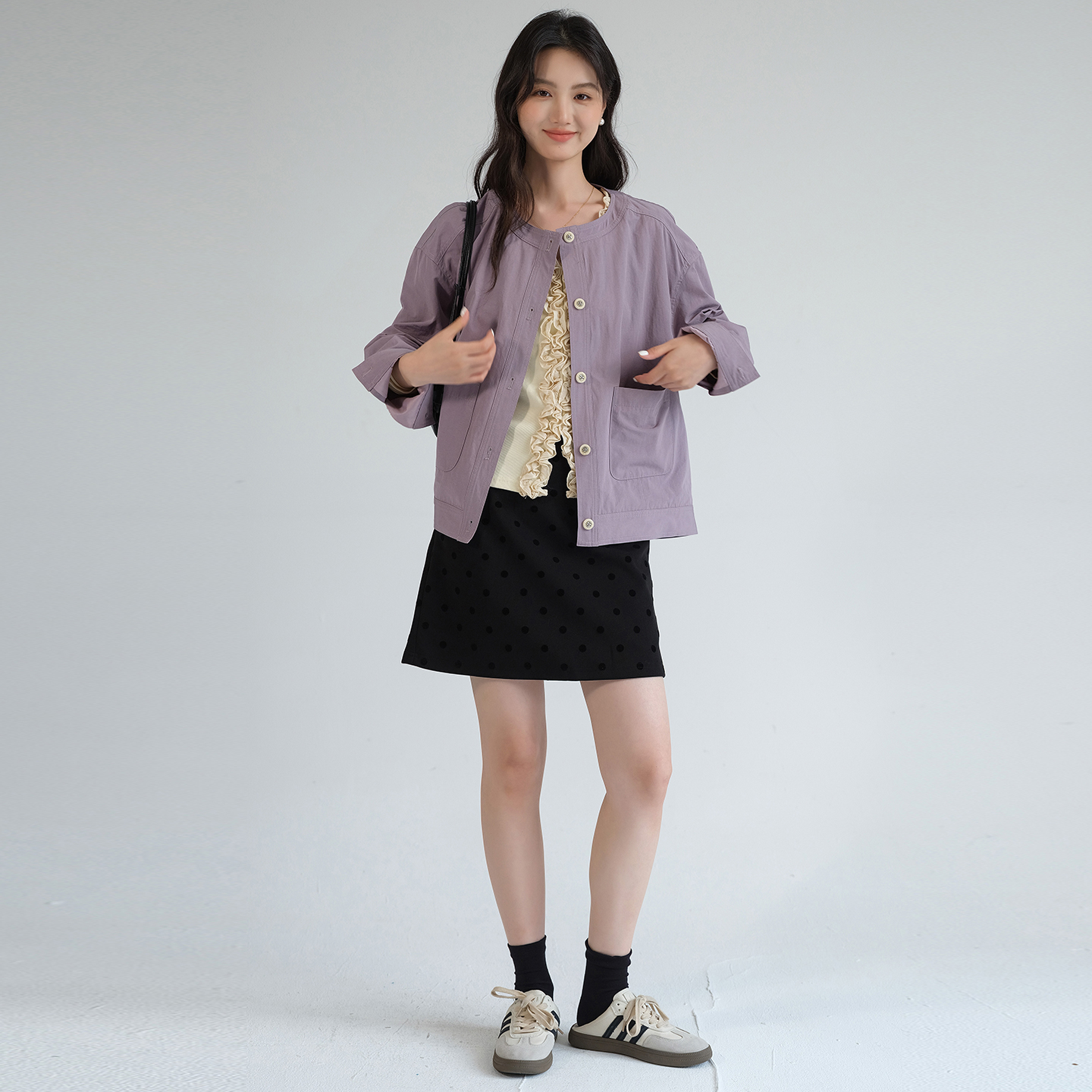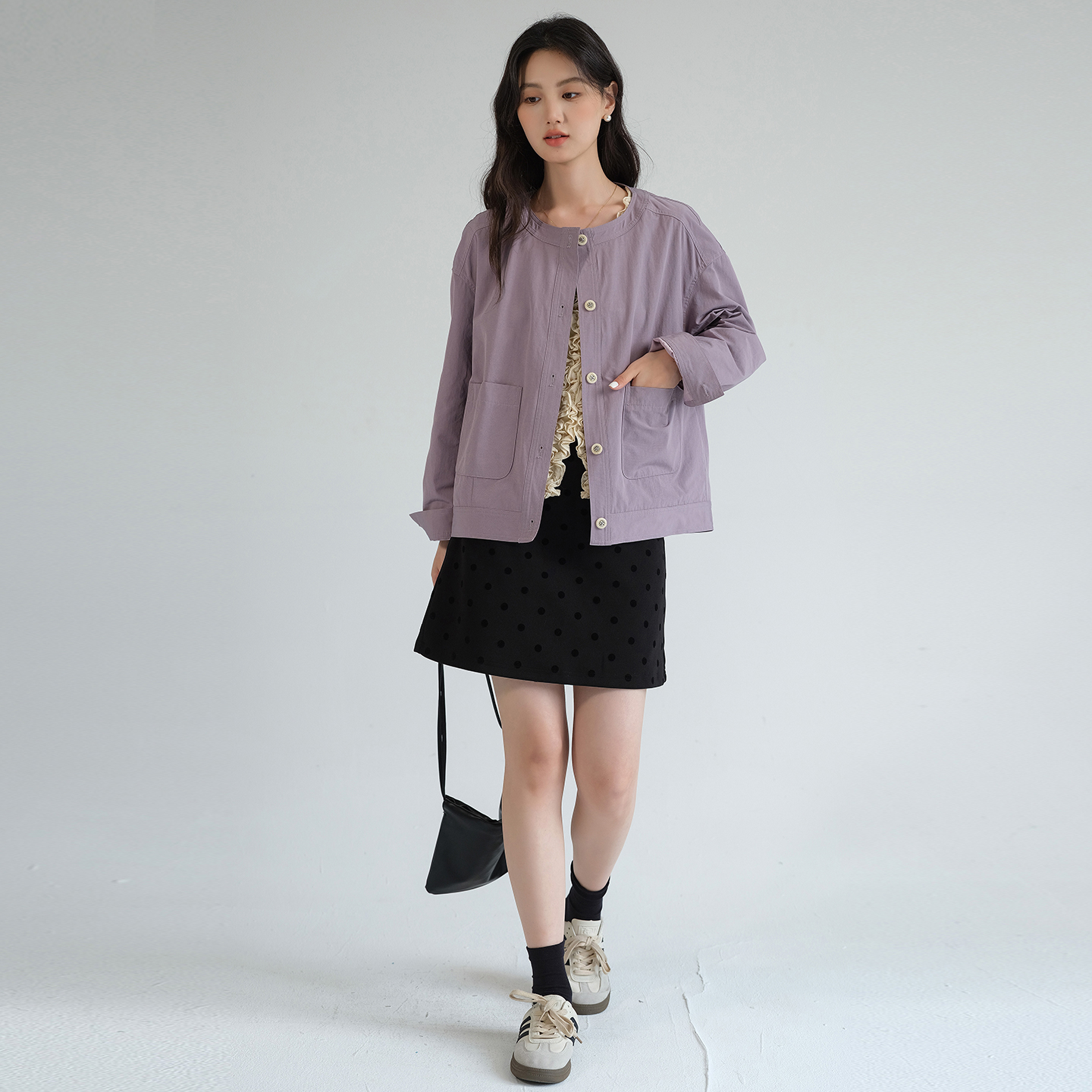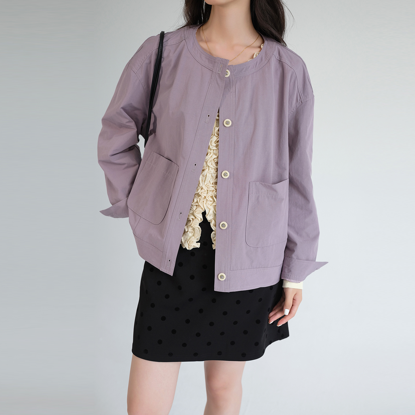 气质圆领夹克开衫 蓝若水大码 新款 松弛感简约外套胖MM2025秋装 女装