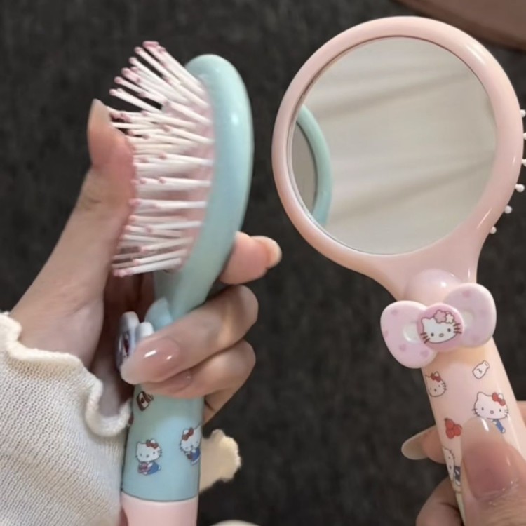 新款 卡通Kitty猫二合一气囊梳子可爱便携迷你手持按摩气垫梳镜子