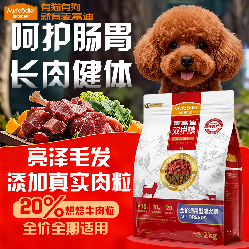 麦富迪狗粮通用型牛肉双拼成犬幼犬粮金毛比熊泰迪中大小型犬4斤