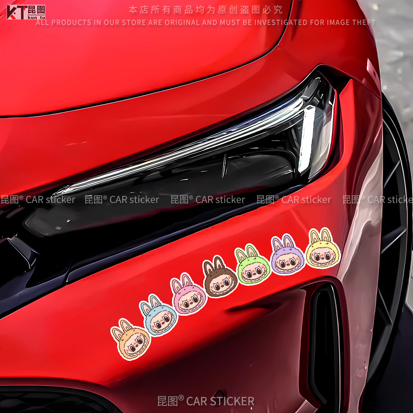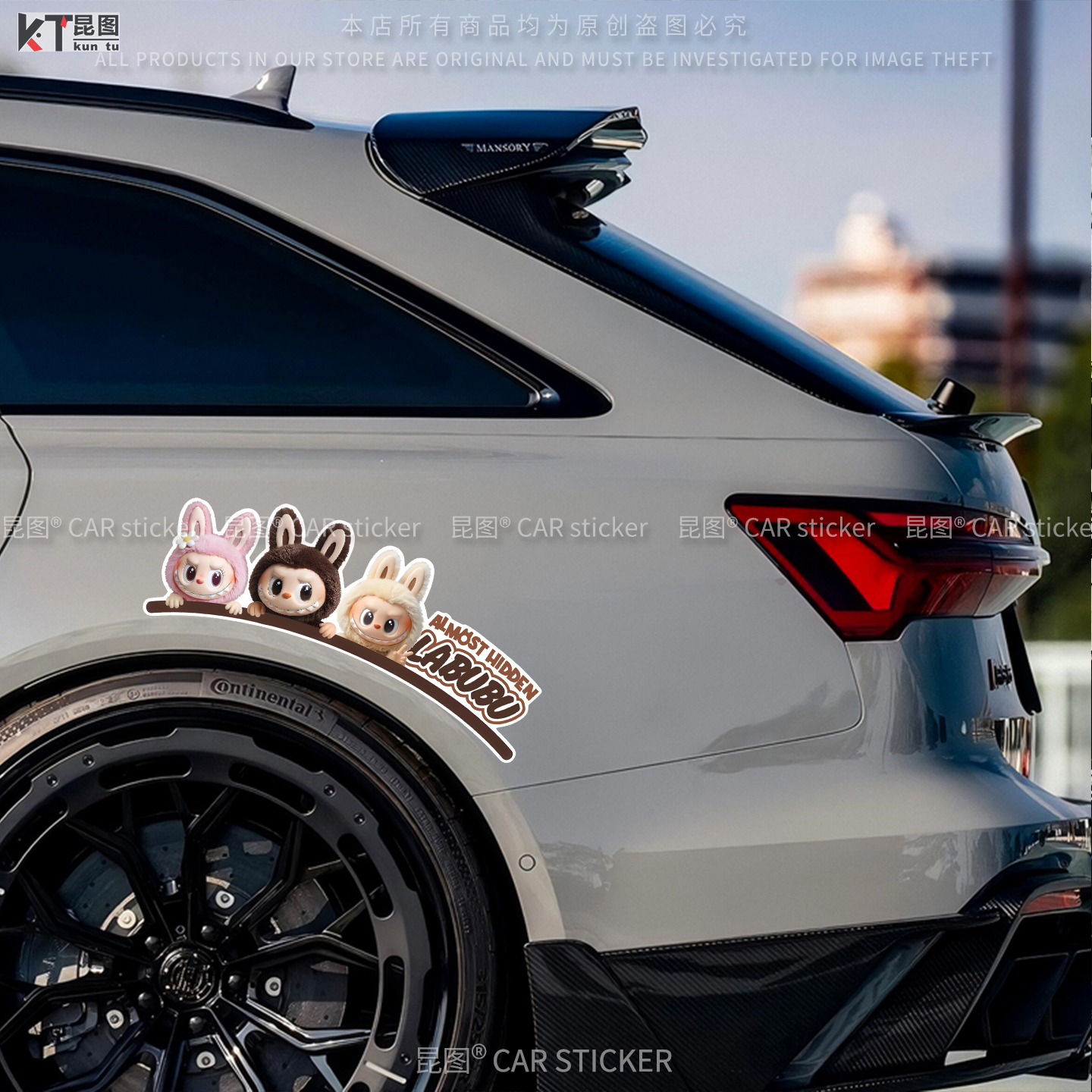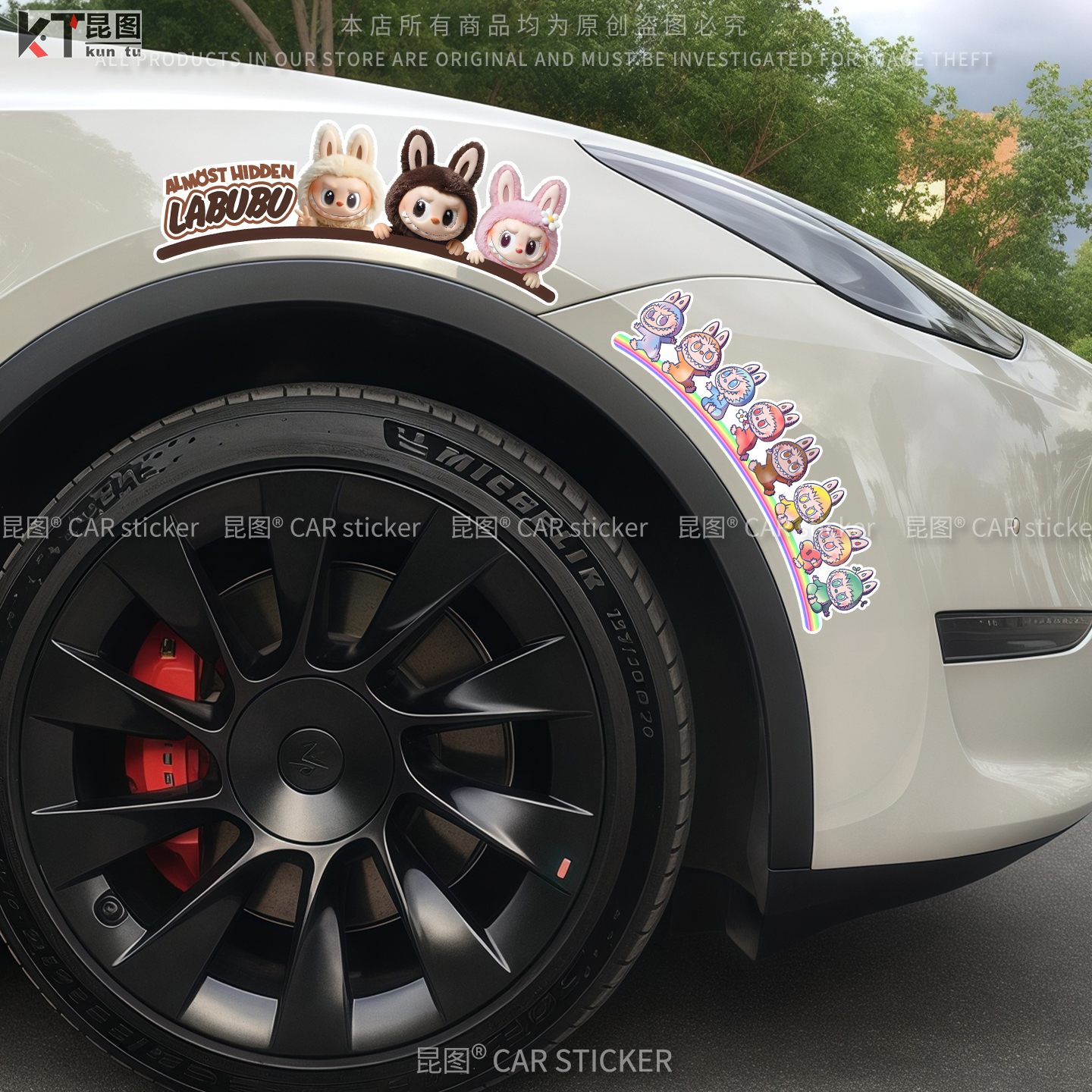 拉布布汽车贴纸轮眉保险杠车尾车身大面积长条划痕遮挡电动车装 饰