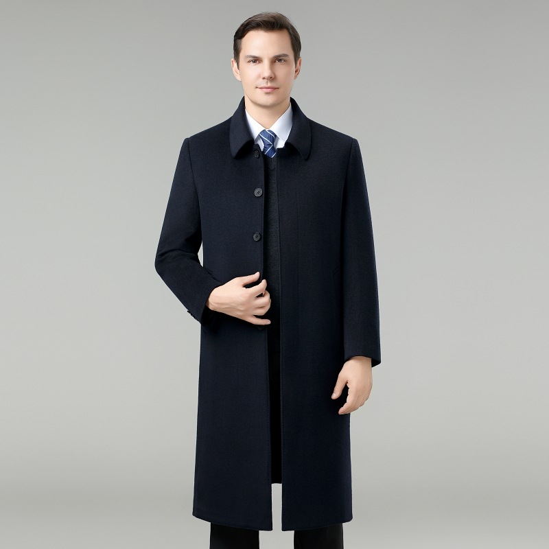 OLANSHAYA 欧兰莎娅双面羊绒大衣男过膝中年外套加厚羽绒内胆长款