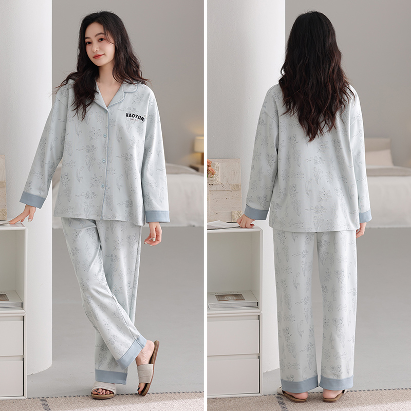 大码 春秋开衫 女士家居服 加厚珊瑚绒睡衣女冬法兰绒加绒套装 秋冬季