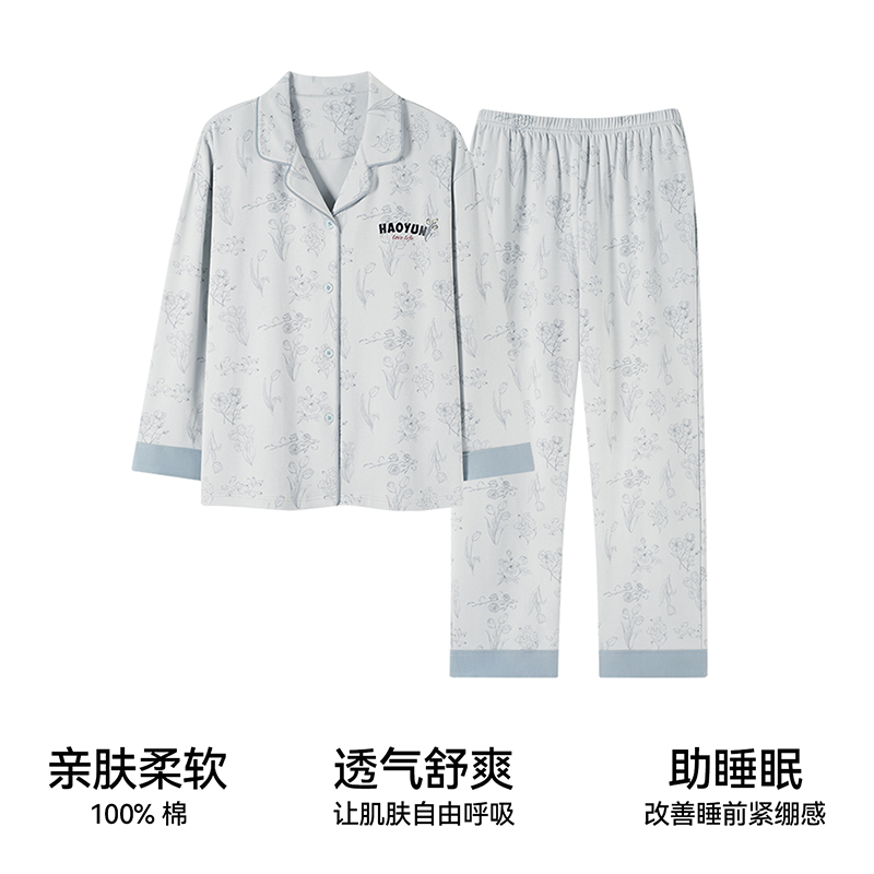 巨柔软 男女家居服套装 纯棉睡衣情侣春秋款 宽松大码 长袖 安之伴