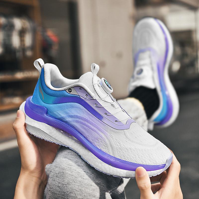休闲高品质时尚 男潮鞋 旋转扣爆米花减震轻便运 透气跑步鞋 正货秋款