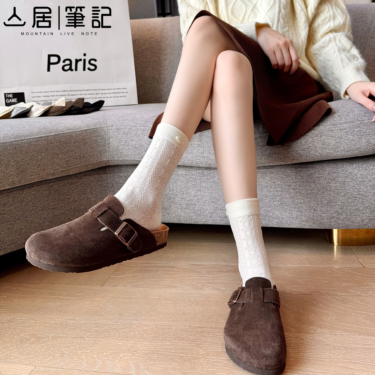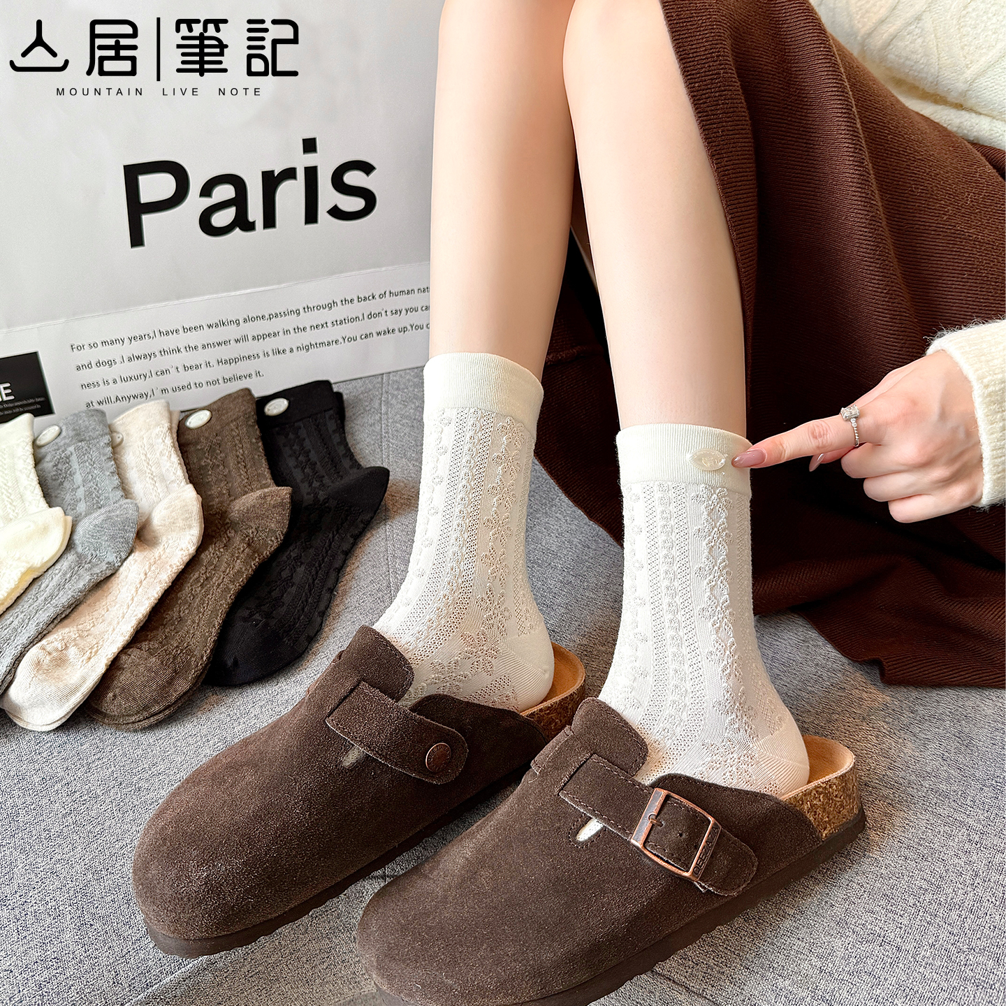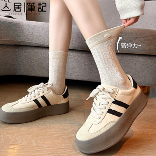 中筒袜花边纯棉月子袜白色春秋长筒袜 薄款 配小皮鞋 堆堆袜子女夏季