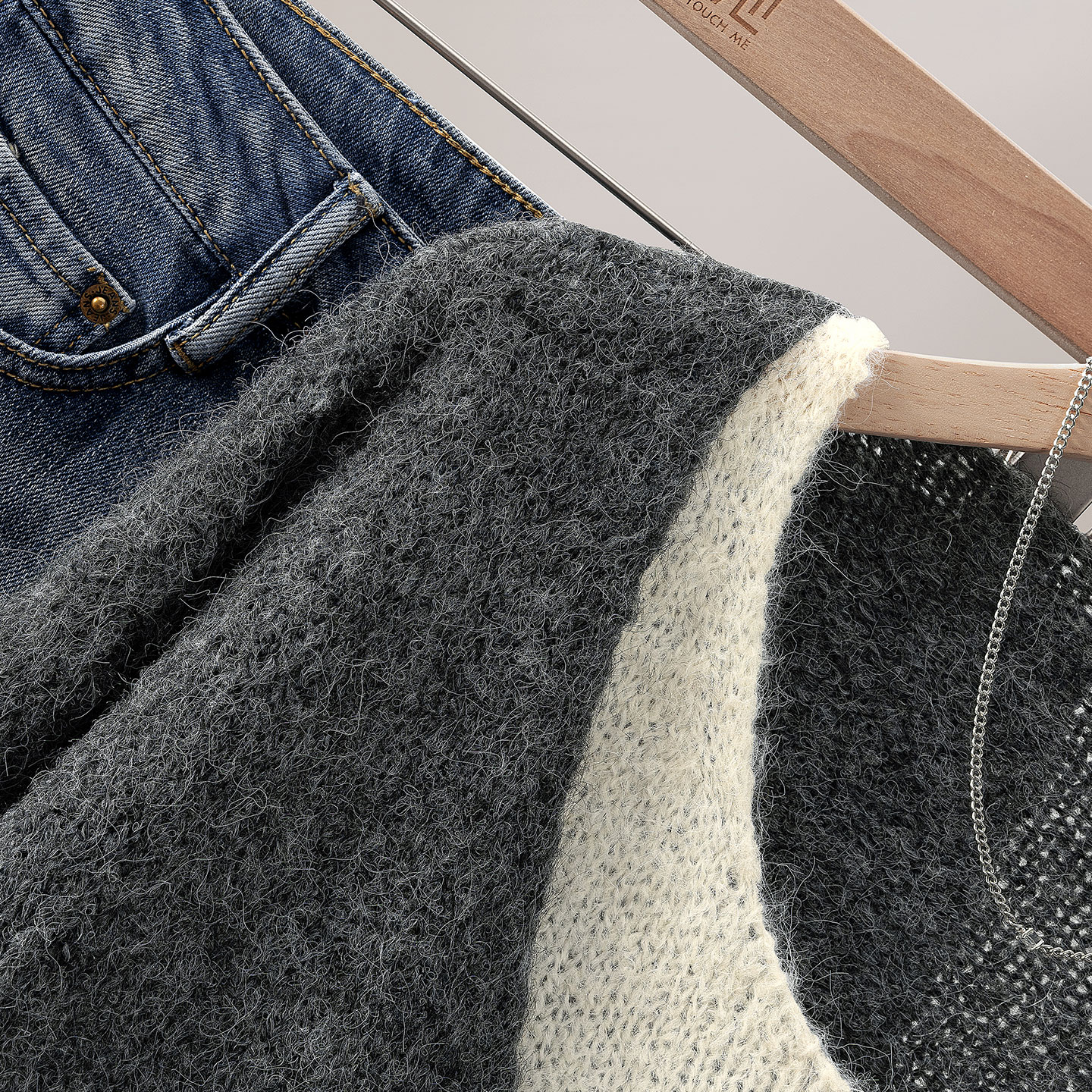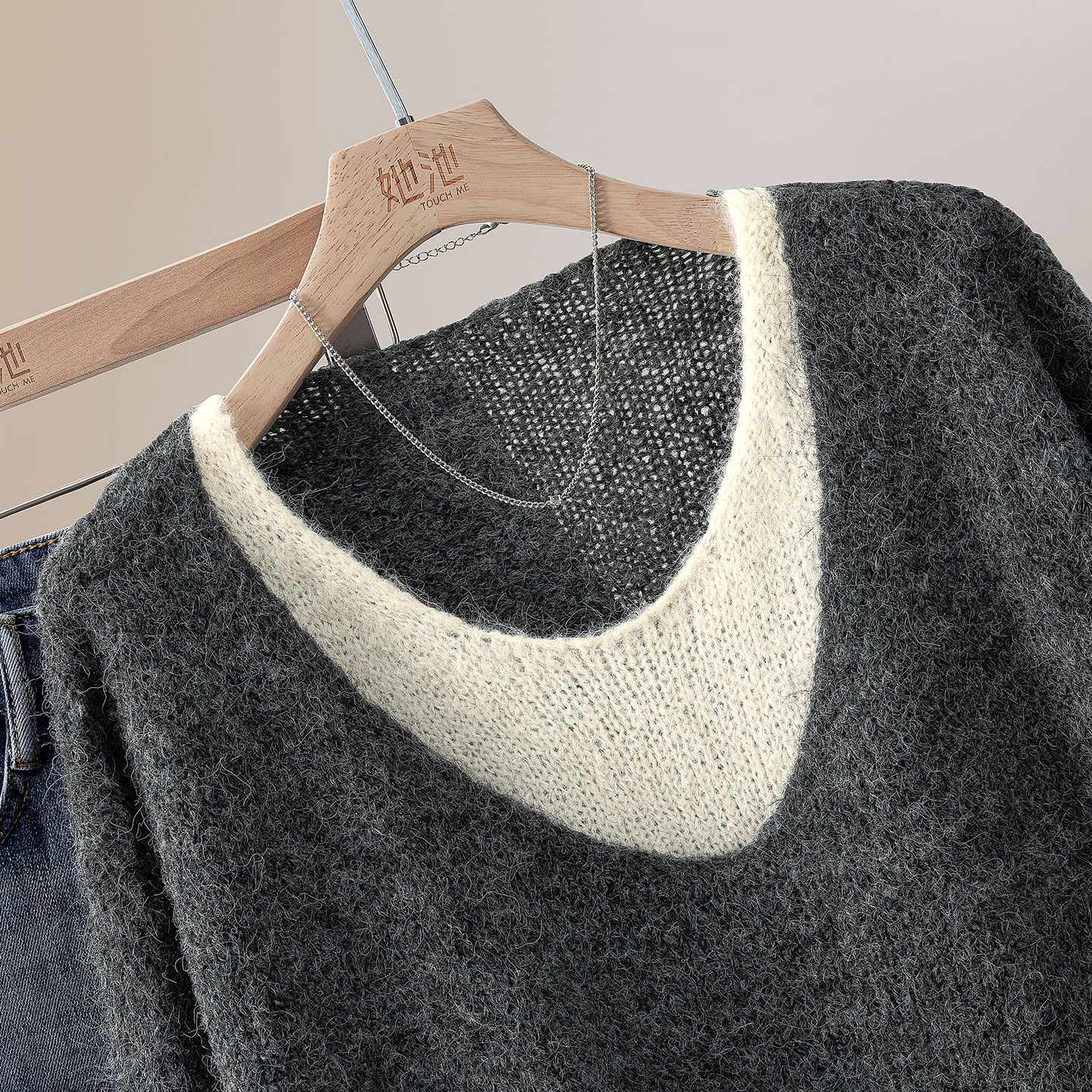 针织衫 慵懒简约风撞色落肩短款 2025秋装 女装 上衣 新款 她池宽松款