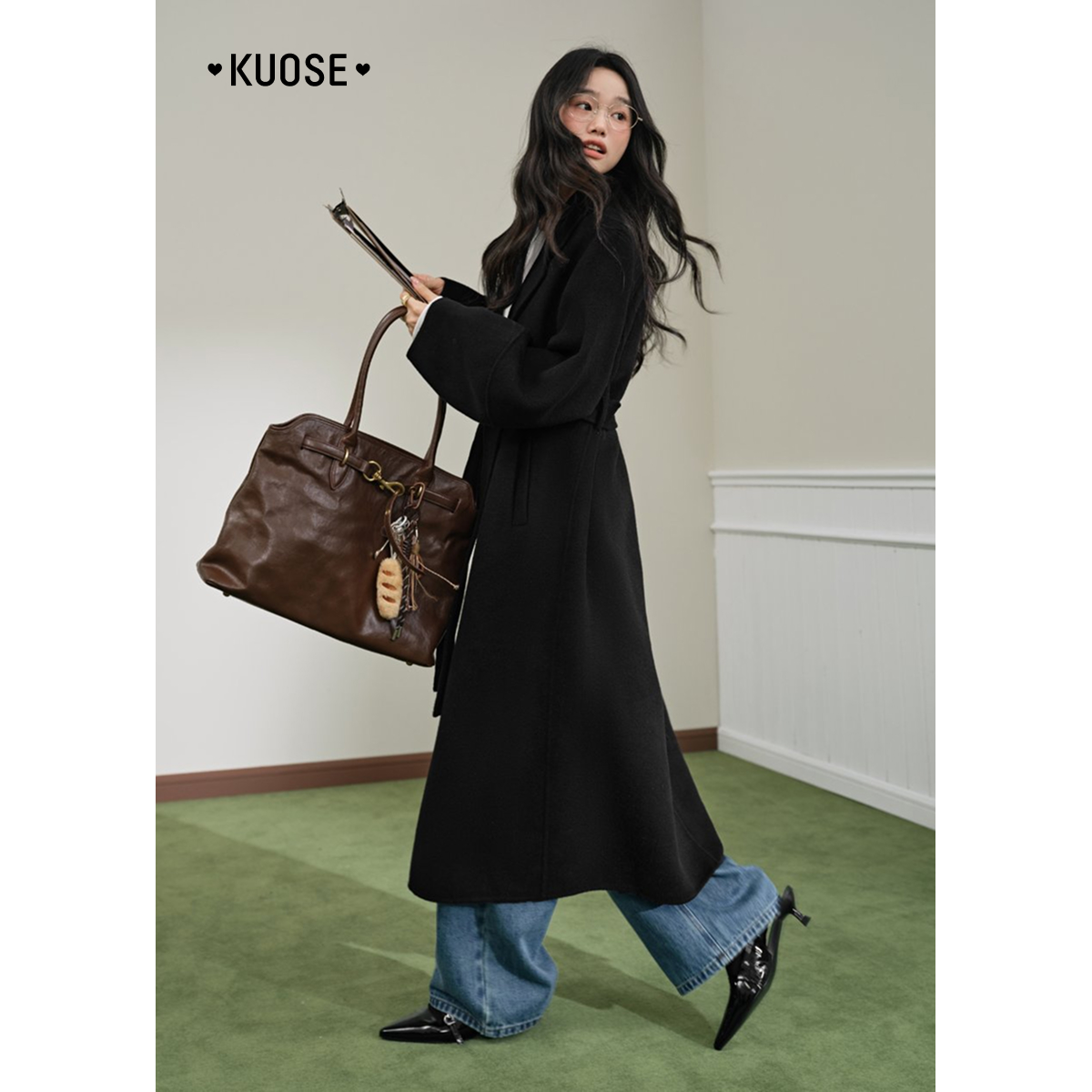 新款 2025冬季 秋水伊人优雅翻领毛呢外套 通勤大衣 100%绵羊毛