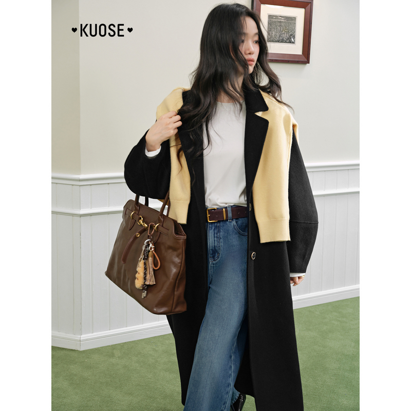 RUISHI芮时 重磅驼绒桑蚕丝羊毛慵懒两穿领毛呢大衣女秋冬外套女