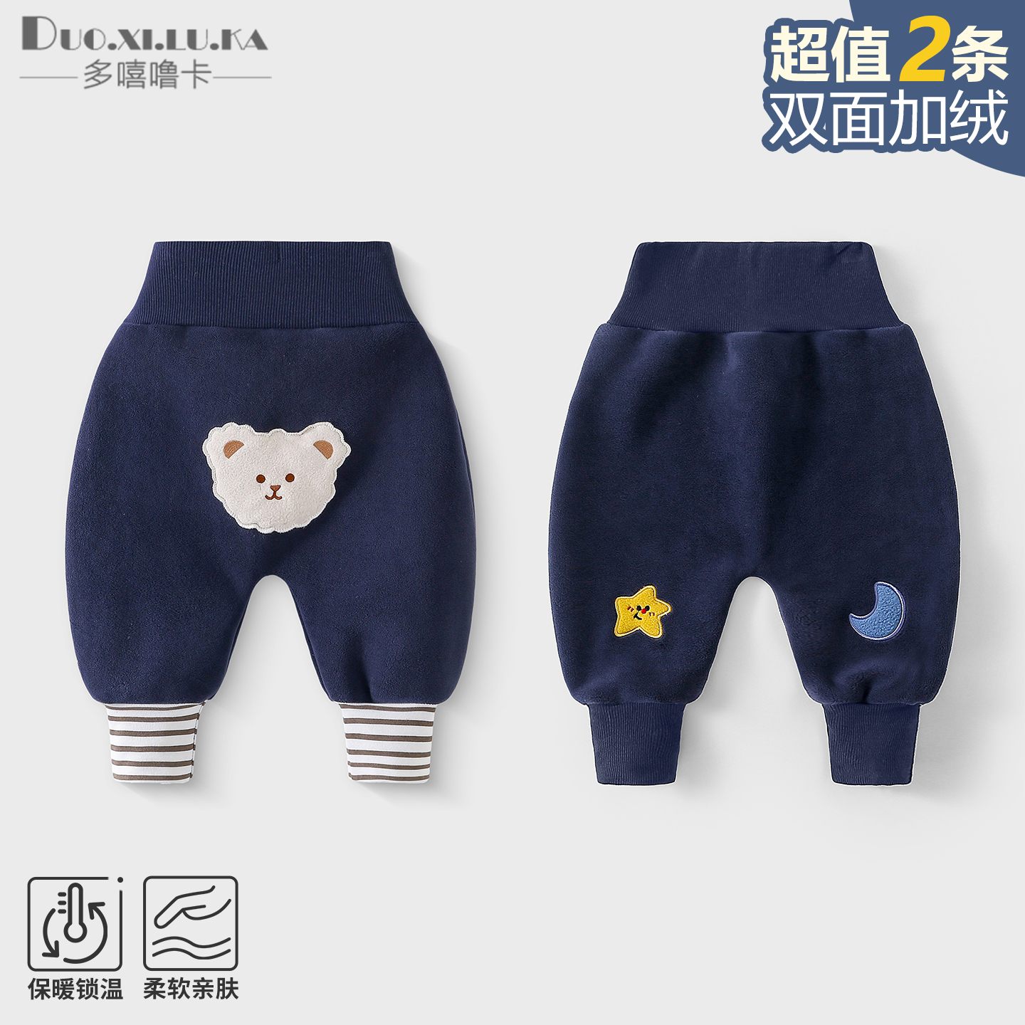 男女童大PP裤 婴幼儿秋冬高腰护肚加厚长裤 奥利绒宝宝大屁屁裤 2件