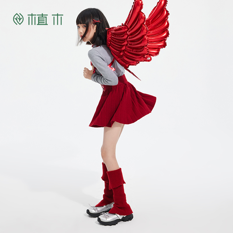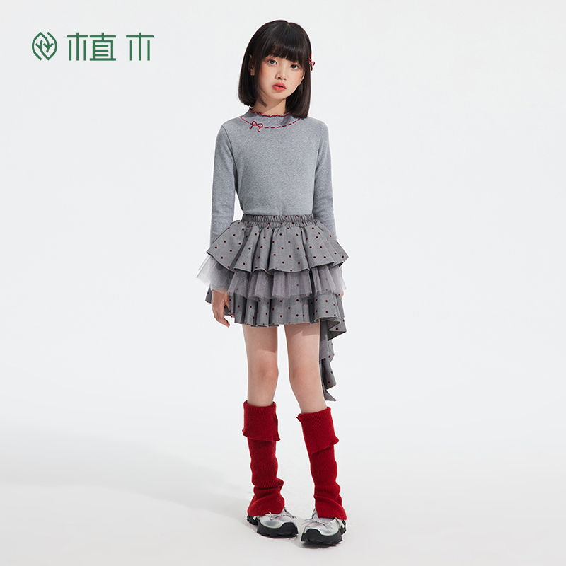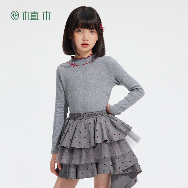 植木童装 中大童半高领花边T恤上衣女童T恤 儿童T恤2025秋冬新款