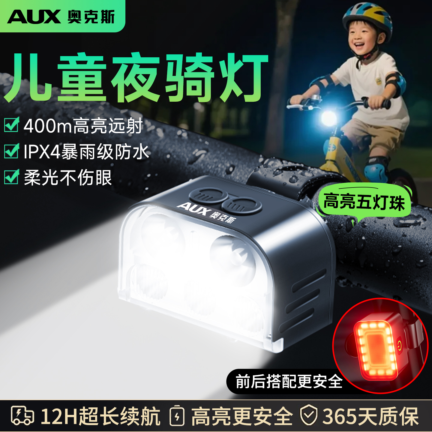 奥克斯儿童自行车夜骑灯夜间照明灯前灯骑行尾灯单车平衡车山地车
