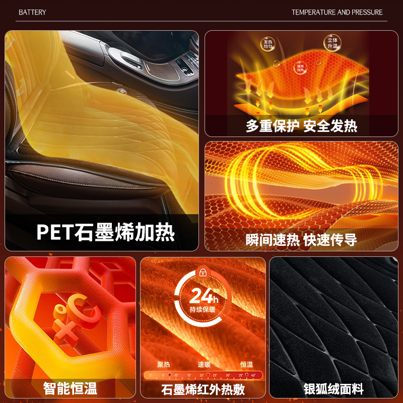 石墨烯汽车加热坐垫冬季 毛绒座垫12V24V保暖 单座椅车载电加热改装