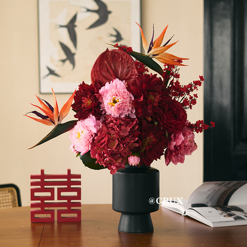 高端红色系仿真花摆件新娘结婚手捧花客厅餐桌婚房布置假花花束