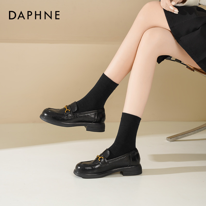 子女通勤百搭单鞋 黑色英伦风小皮鞋 女 女2025新款 达芙妮厚底乐福鞋