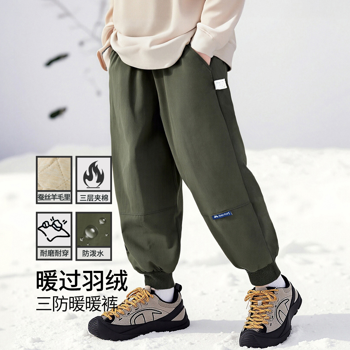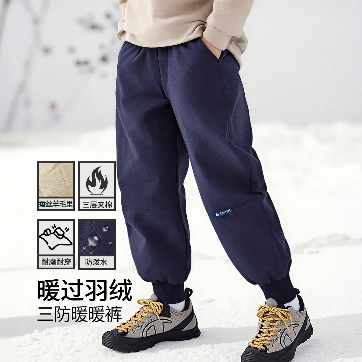 男女童防水中大童户外休闲裤 儿童秋冬裤 子羊毛蚕丝夹棉加厚三防裤