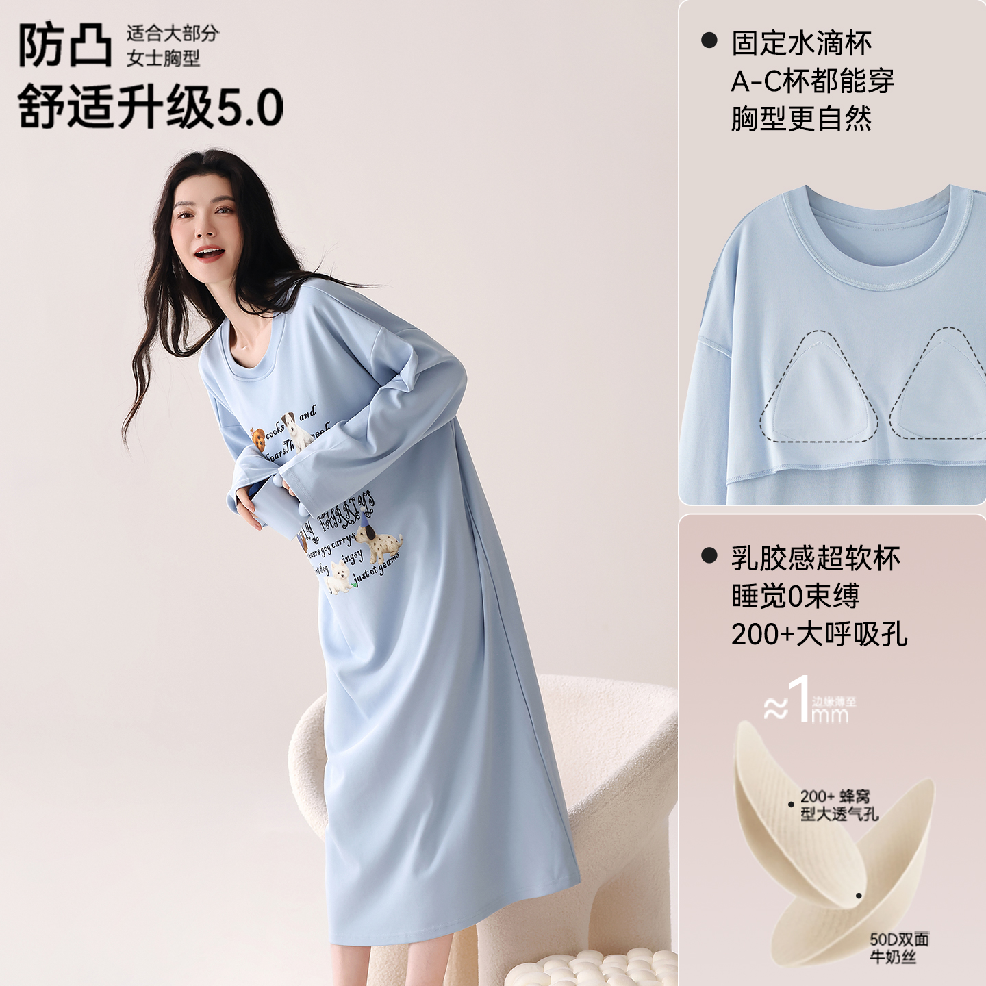 保暖家居服D 睡衣套装 MIIOW 猫人睡裙女秋冬宽松半边绒加绒加厚款