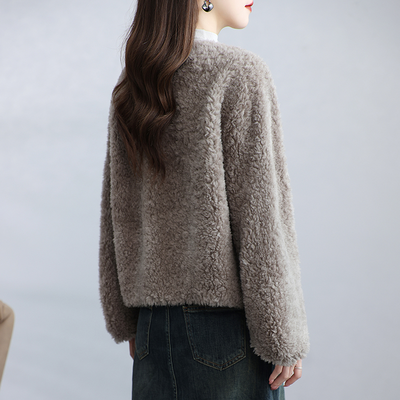 海宁颗粒绒皮草外套女短款 羊剪绒甜美拉链年轻减龄羊羔毛大衣冬季