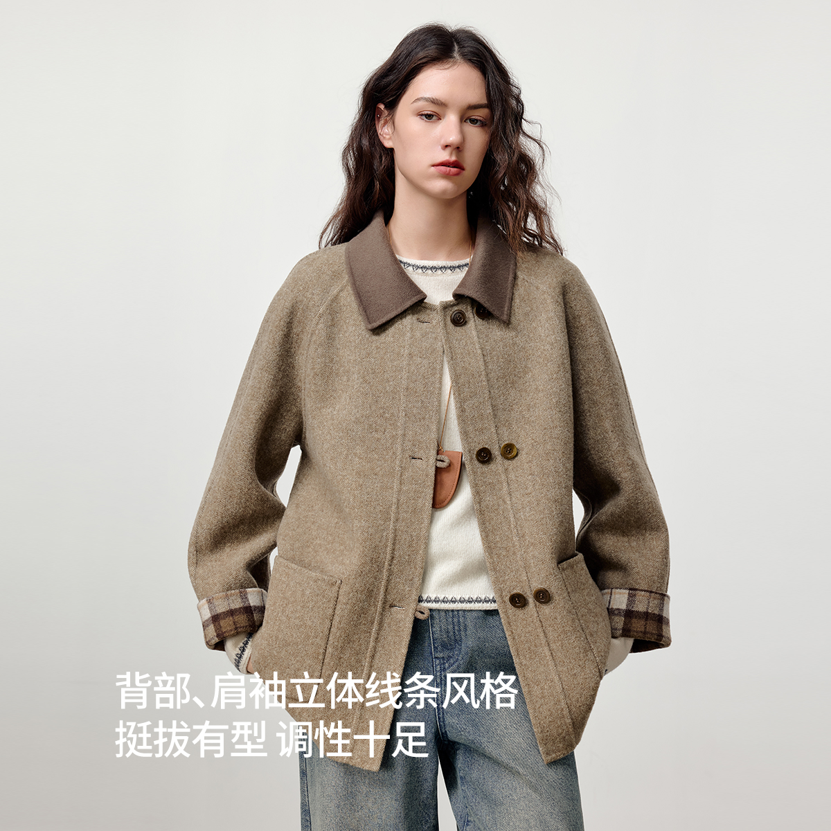 圆领大衣女小个子气质毛呢外套 高端羊毛双面呢短款 2025年春季 新款