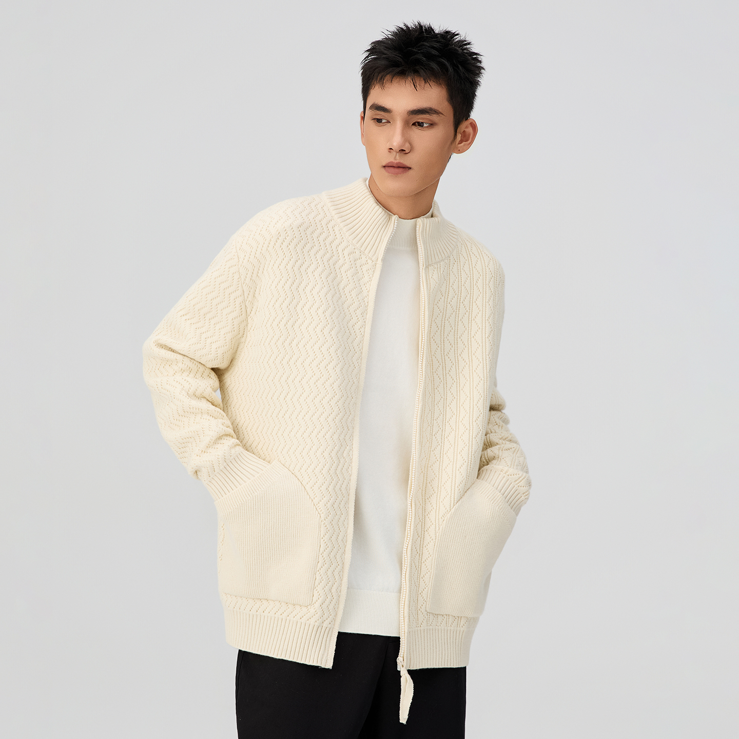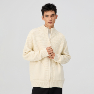外套女 宽松插肩毛衣开衫 NOA真维斯拉链高领加厚针织上衣 2025秋季