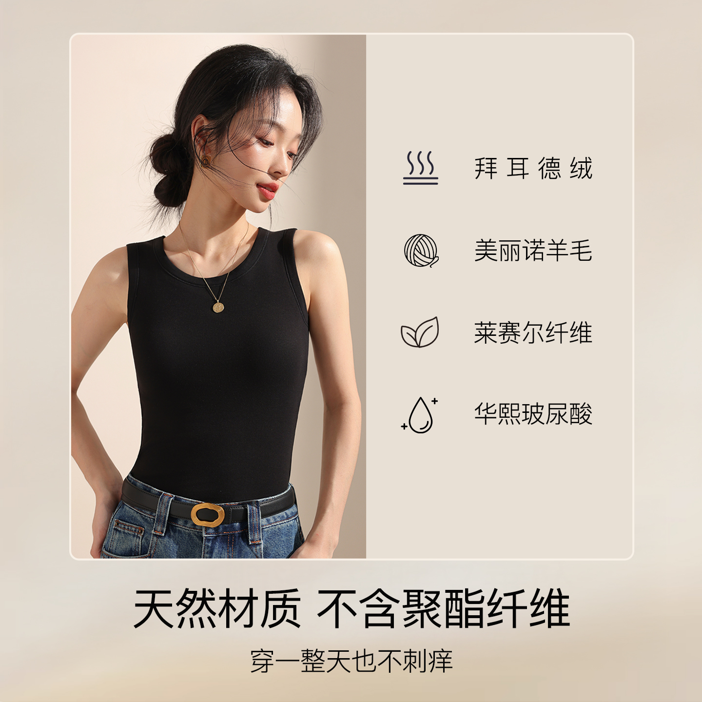 秋冬内搭打底衫 带胸垫一体式 保暖背心女2025新款 猫人高个子加长版