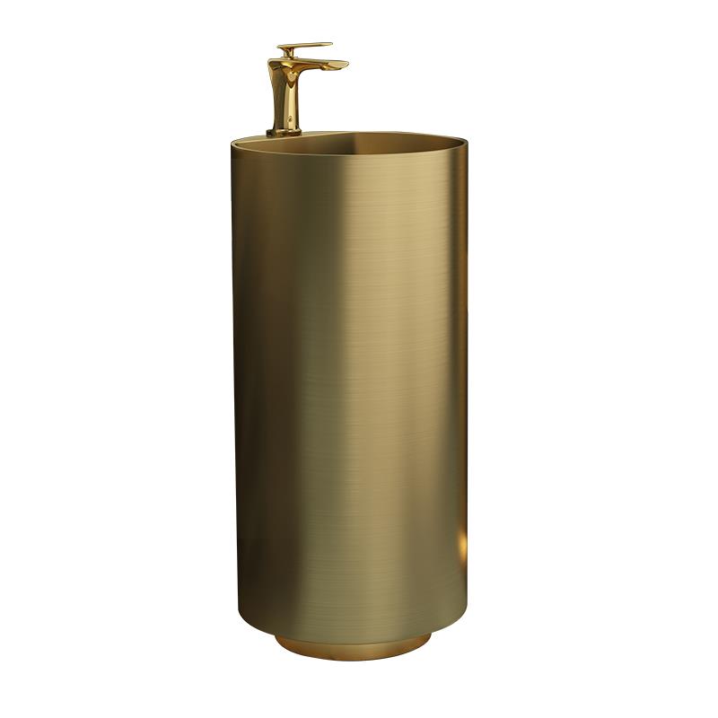金色圆形不锈钢立柱式 带灯立柱盆酒店卫生间洗手台盆 洗脸盆落地式