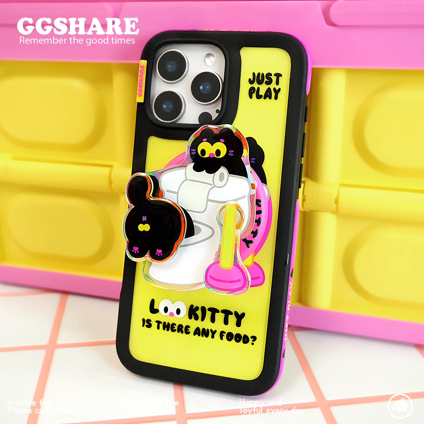 GGSHARE寄居蟹原创马桶猫iPhone17手机壳适用苹果17promax磁吸支架新品 16pro保护套防摔卡通15磨砂背板挂绳14