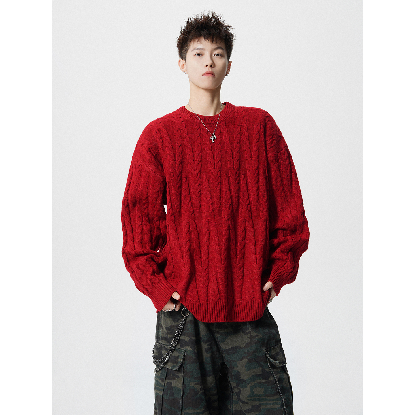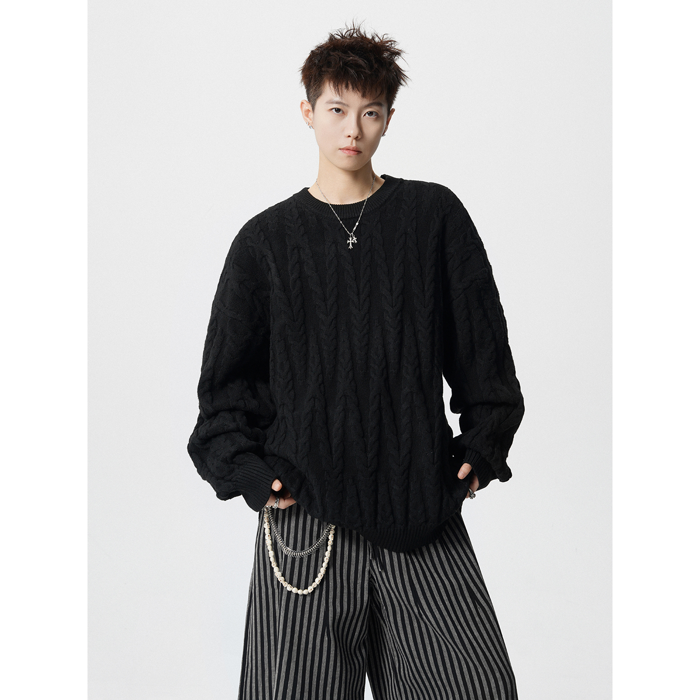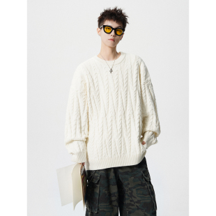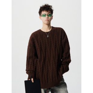 潮牌宽松休闲百搭情侣套头打底针织衫 美式 慵懒风麻花毛衣男秋冬季