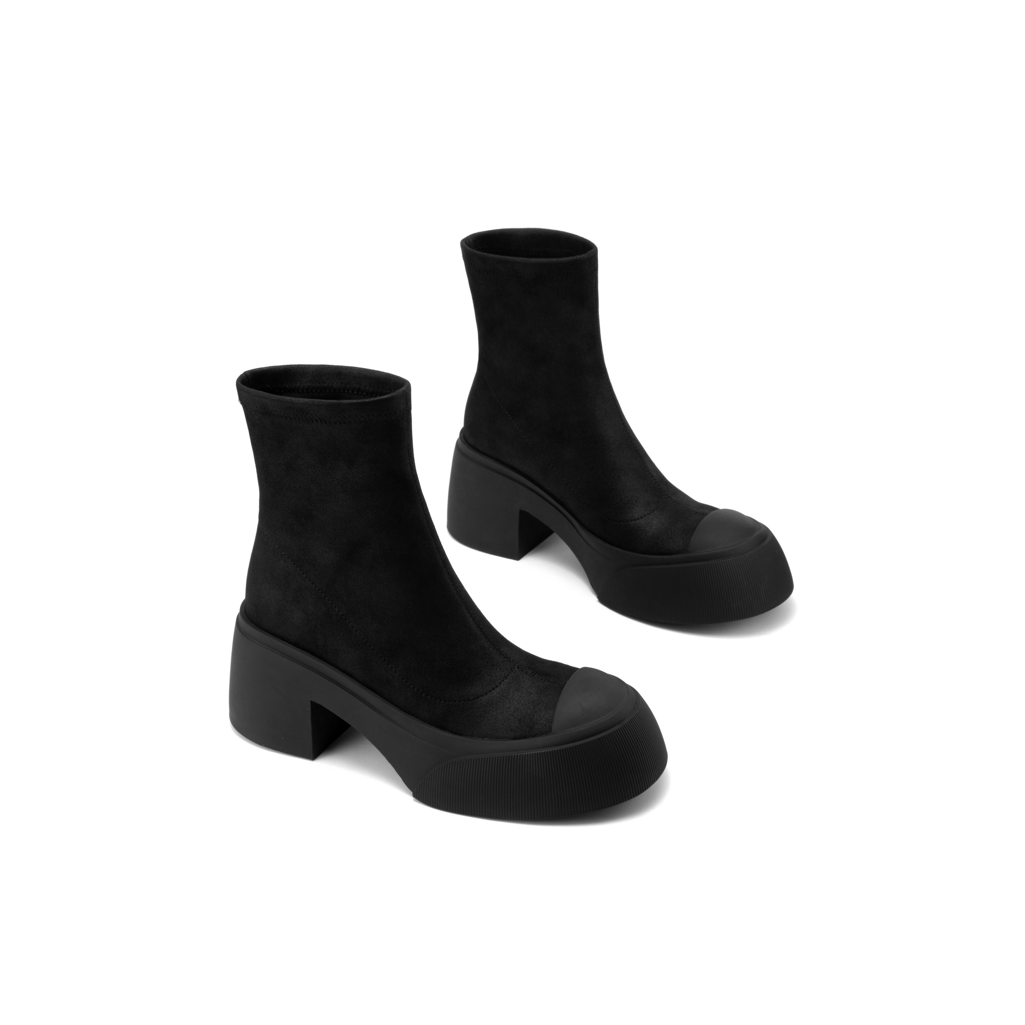JOOC玖诗羊纹弹力绒布防水台短靴2025秋冬新款 粗跟增高休闲瘦瘦靴