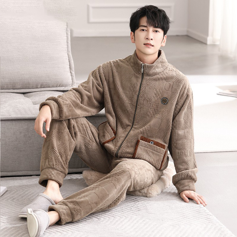 冬天套装 男士 珊瑚绒加厚加绒法兰绒卡通家居服男款 冬季 睡衣秋冬款
