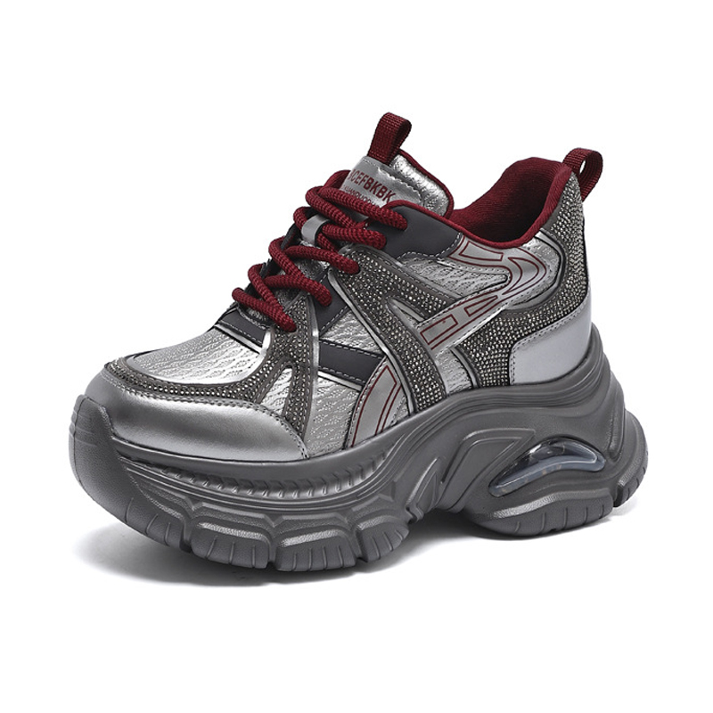 2025秋季 骆驼女鞋 新款 休闲透气老爹鞋 女 厚底增高银色运动鞋 银熠