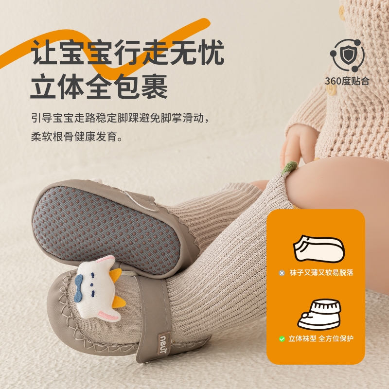 学步前袜 袜 宝宝长筒软底地板袜儿童秋冬加厚 18月婴儿鞋 大黄蜂0
