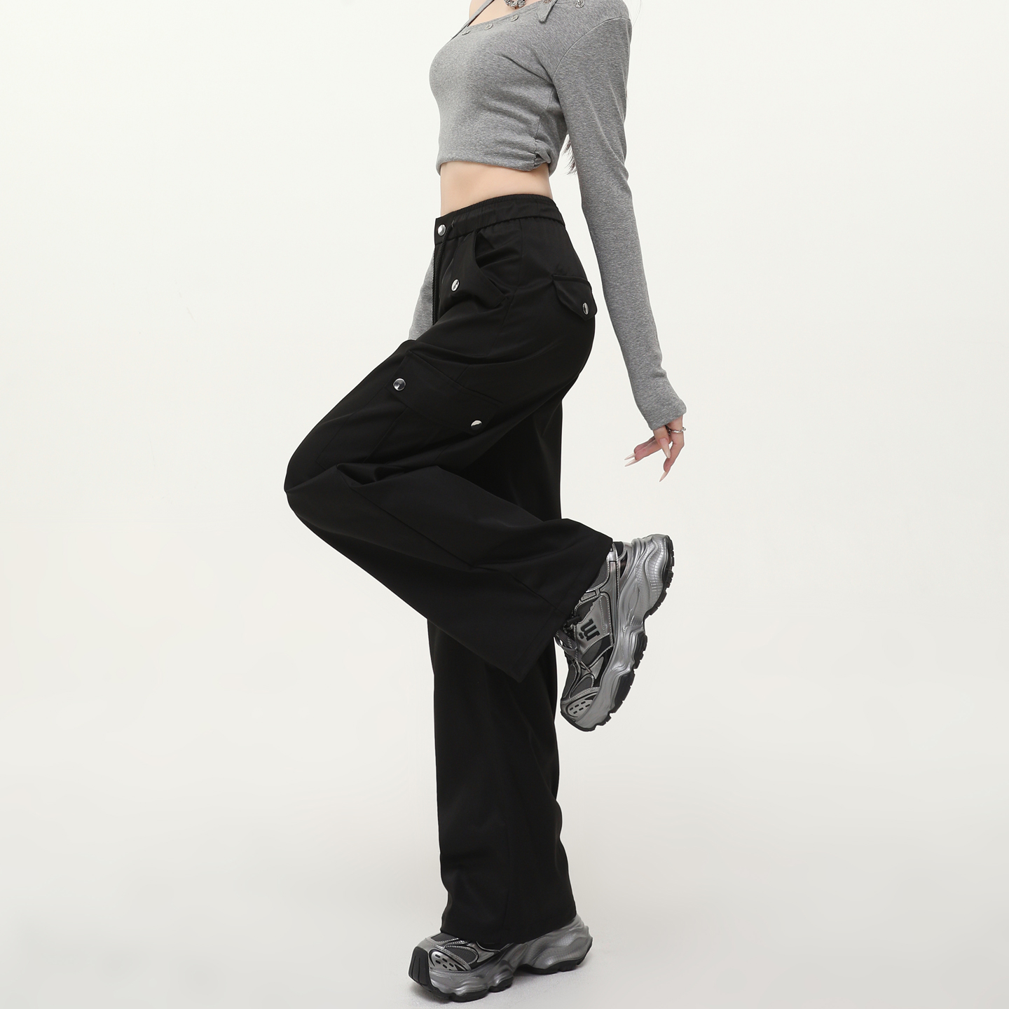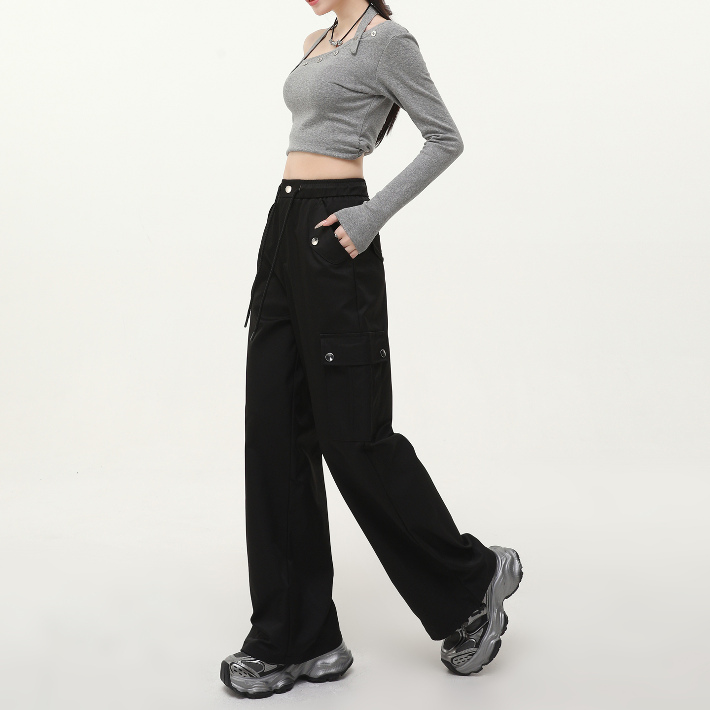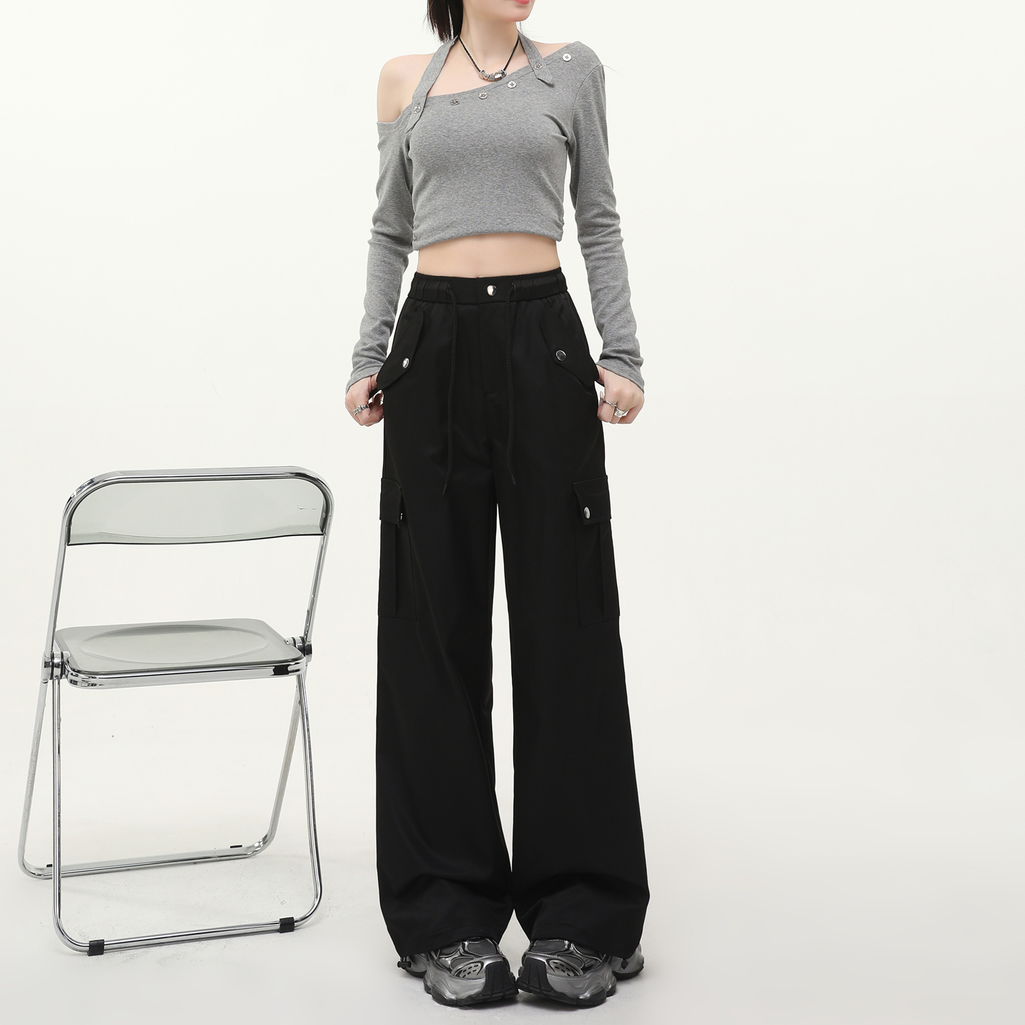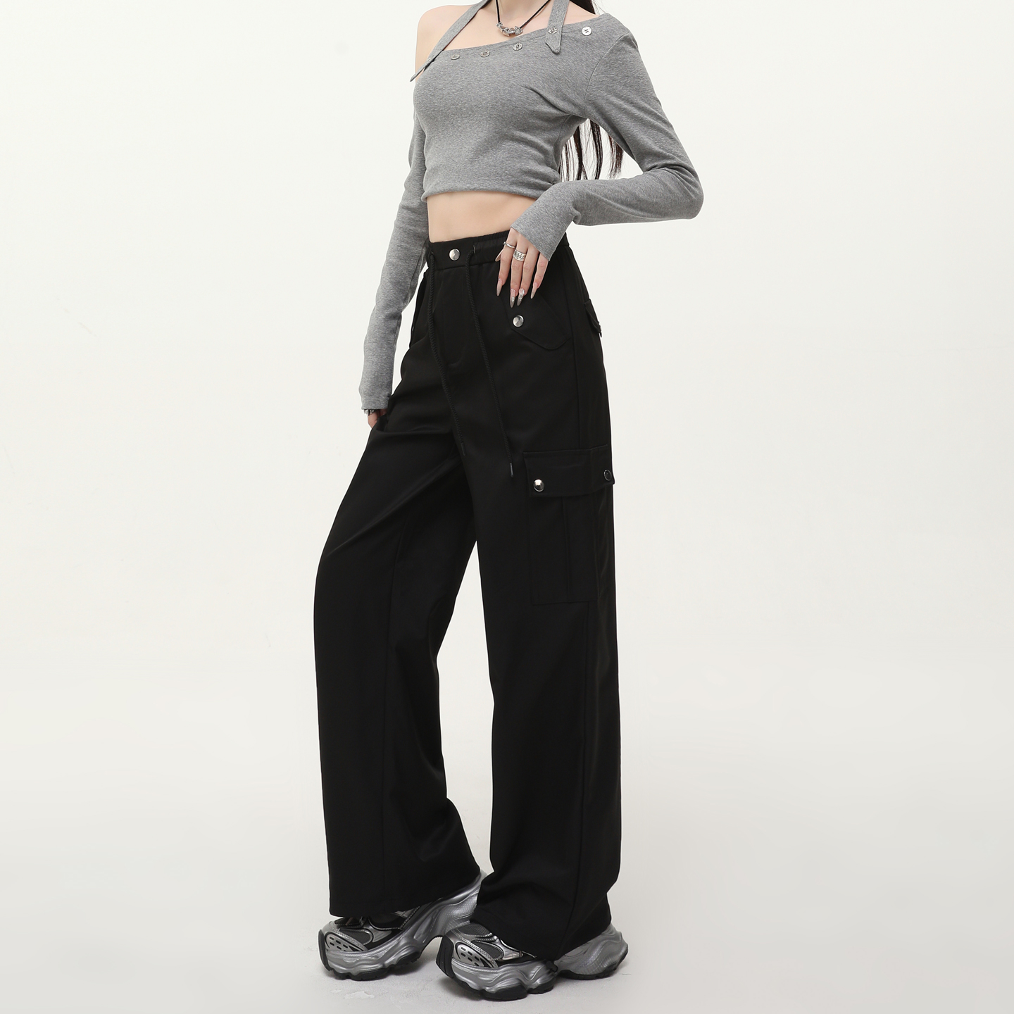 女2025新款 裤 酷飒风高腰秋季 宽松垂感大码 美式 显瘦休闲阔腿裤 工装