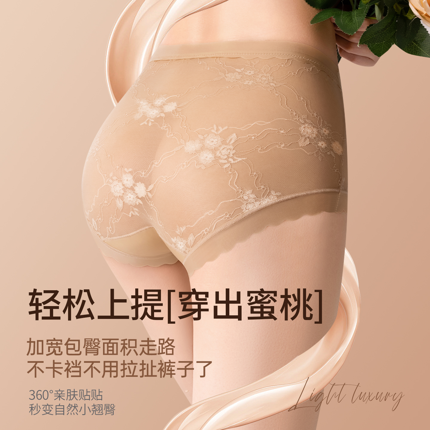 国风高腰内裤 薄 女性感蕾丝收腹10A抗菌加长裆提臀冰丝面膜肌底裤