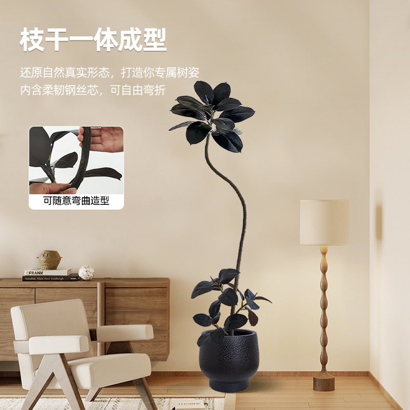 仿真绿植高端轻奢中古风黑金刚橡皮树室内客厅装 饰假绿植高档摆件