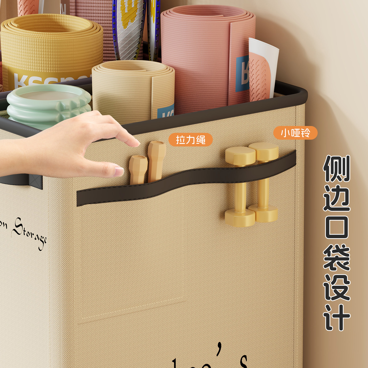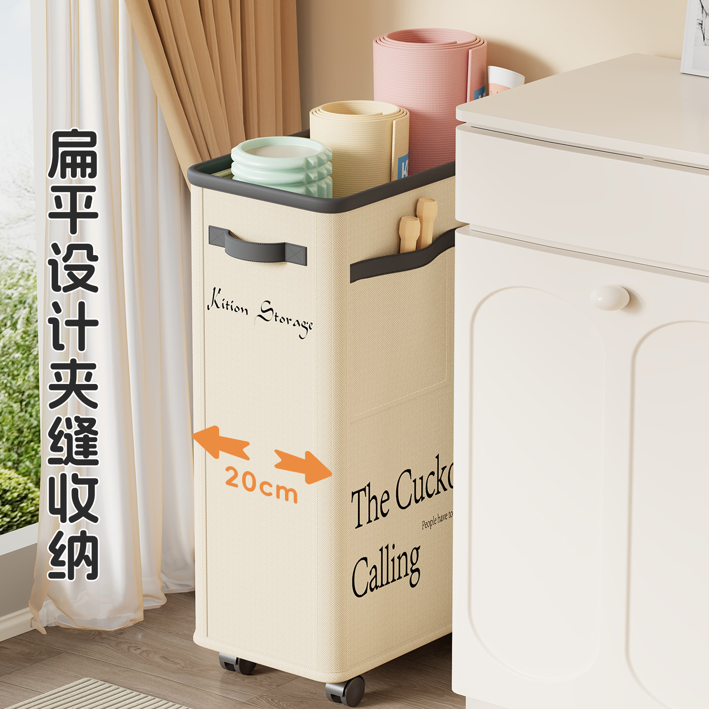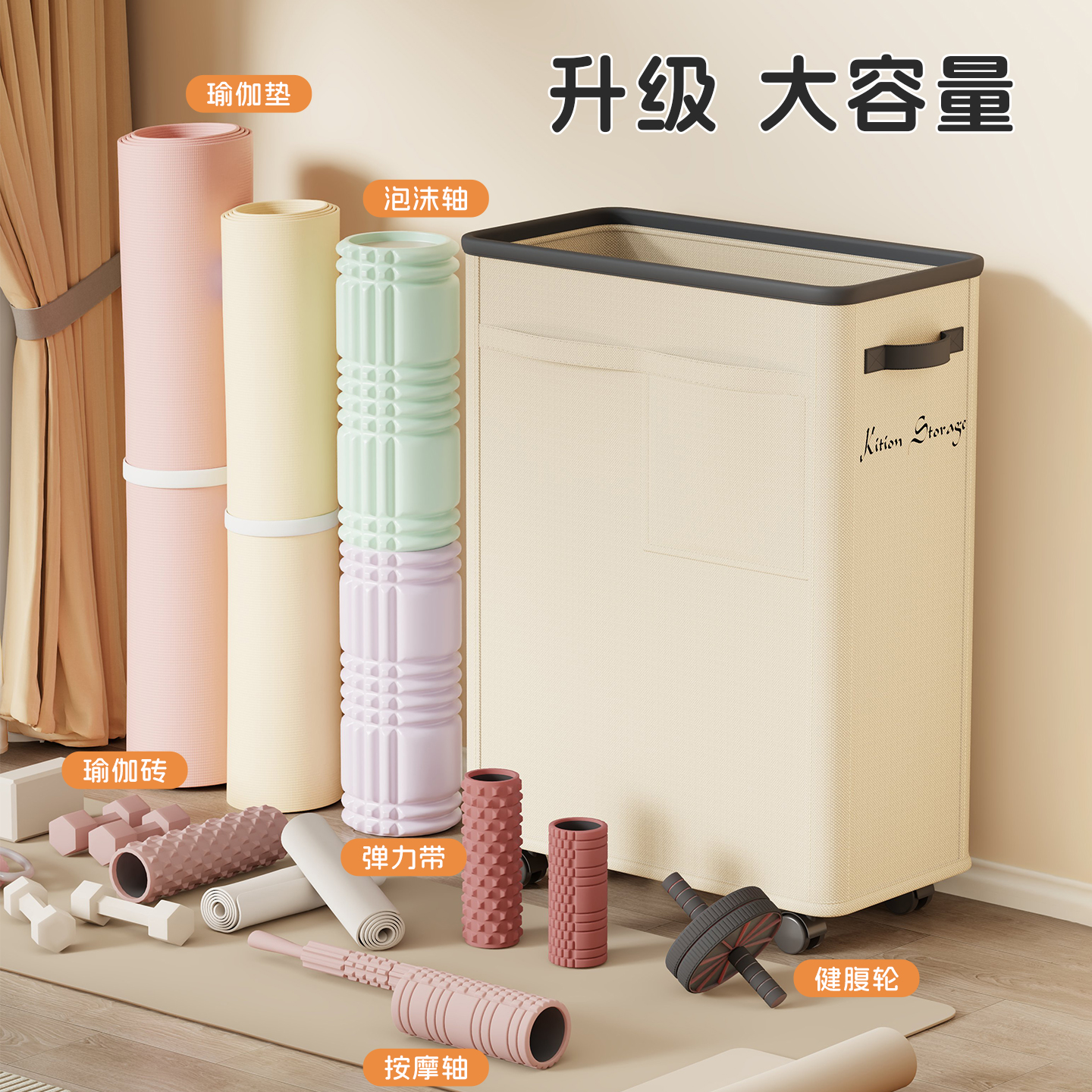 瑜伽垫收纳筐家用带轮可移动运动用具健身器材泡沫轴夹缝收纳神器
