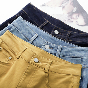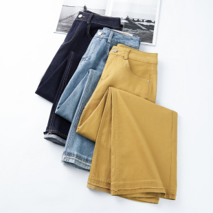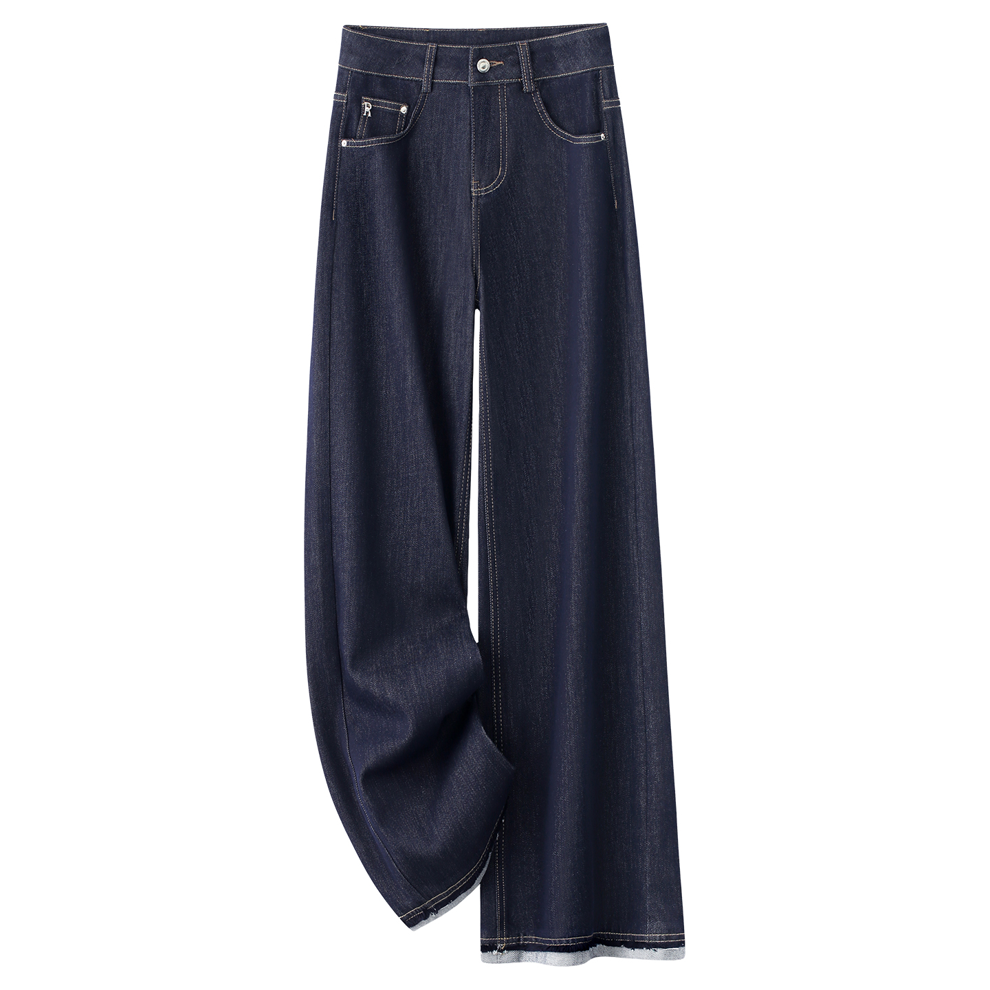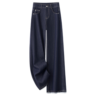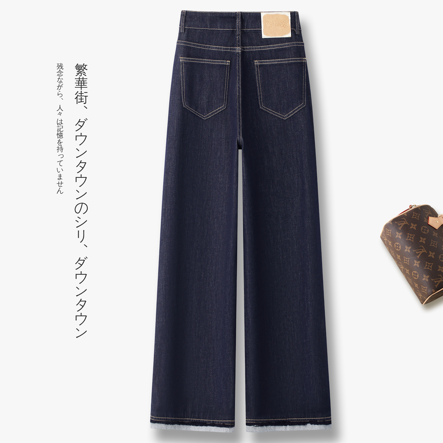 阔腿裤 卷边设计感丹宁蓝直筒牛仔裤 高腰显瘦窄版 新款 子 女2025秋季