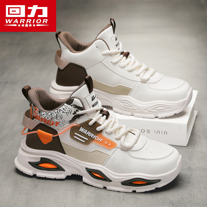 运动鞋 高帮休闲鞋 秋冬新款 子学生厚底男鞋 皮面鞋 征服鸿星尔克板鞋
