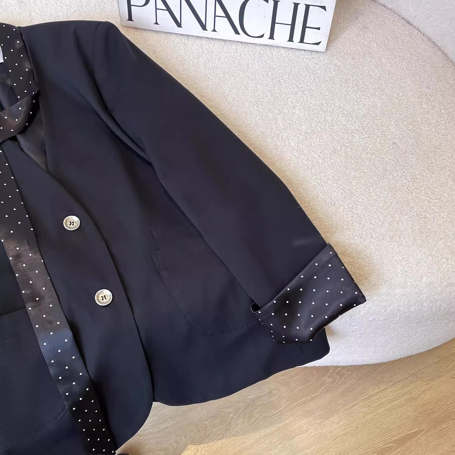 设计感拼接高级感气质小西装 新款 黑色外套女2025秋装 爵莱菲大码