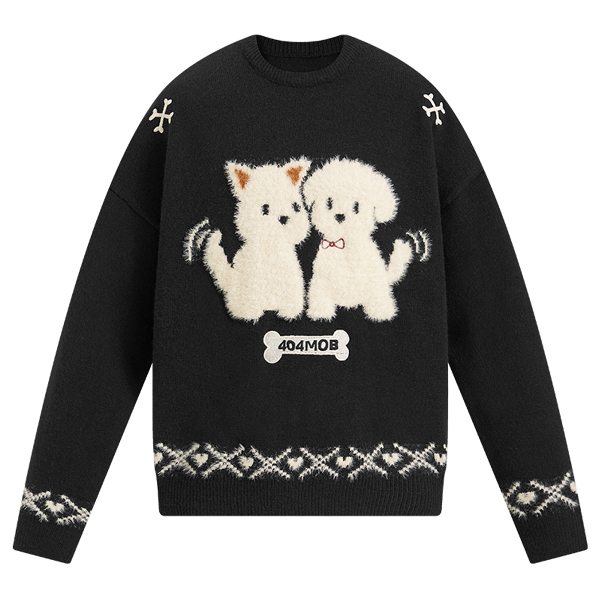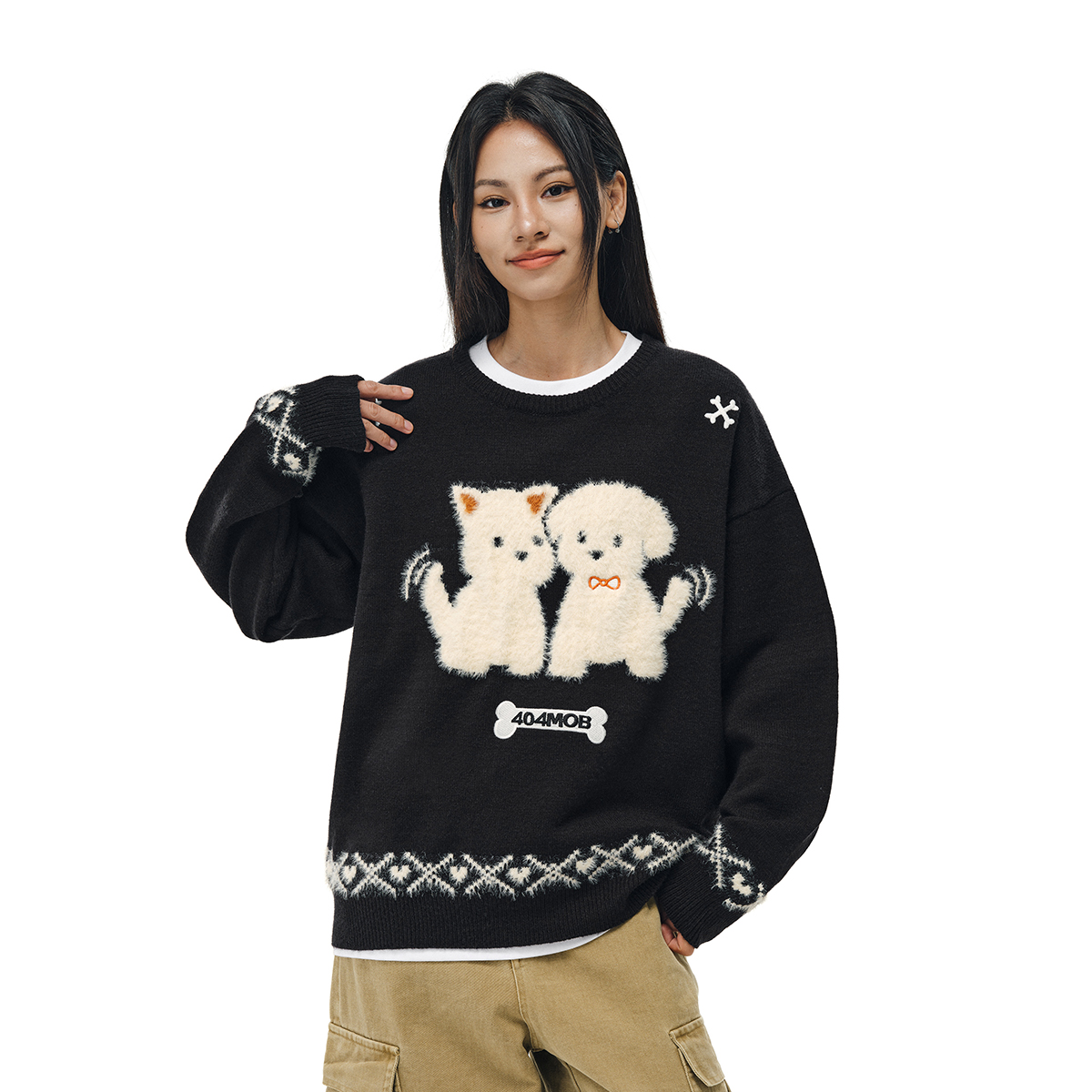 小个子毛衣 新款 阔色刺绣小狗针织开衫 外套上衣黑色女2025秋冬季