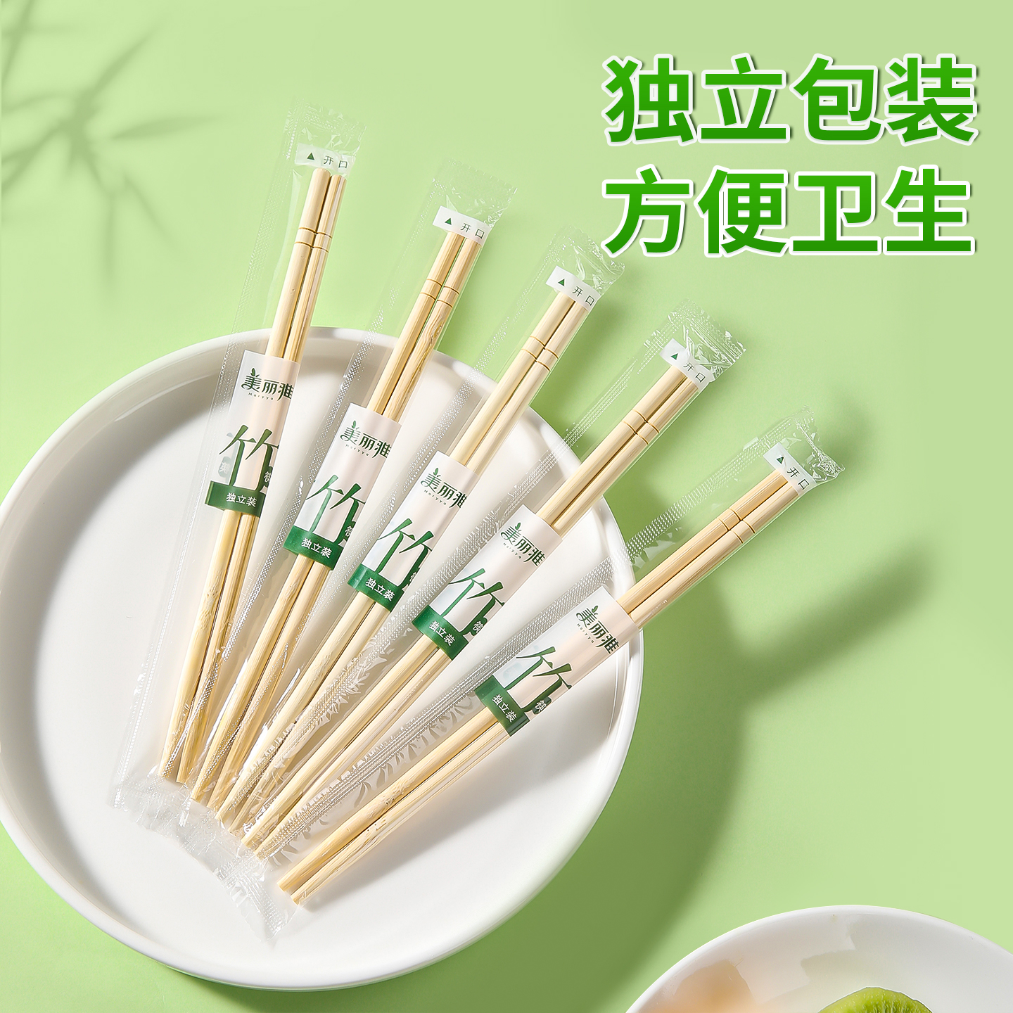 美丽雅一次性筷子独立包装 家用加长卫生筷商用批发快餐竹筷外卖