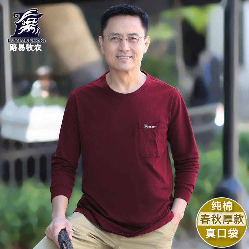 春秋上衣老头衫 中年男士 t恤男纯棉圆领宽松中老年人汗衫 爸爸长袖