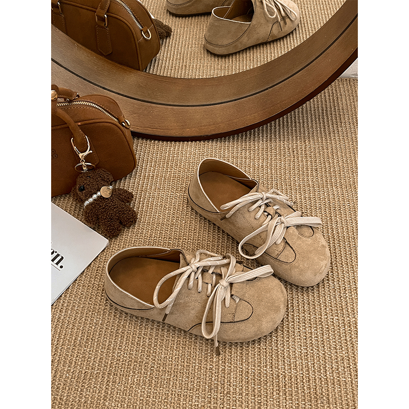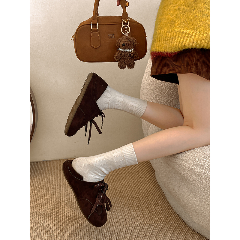 配裙子百搭软底单鞋 复古棕色法式 秋季 女2025新款 子 平底全包勃肯鞋