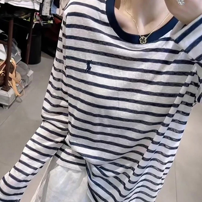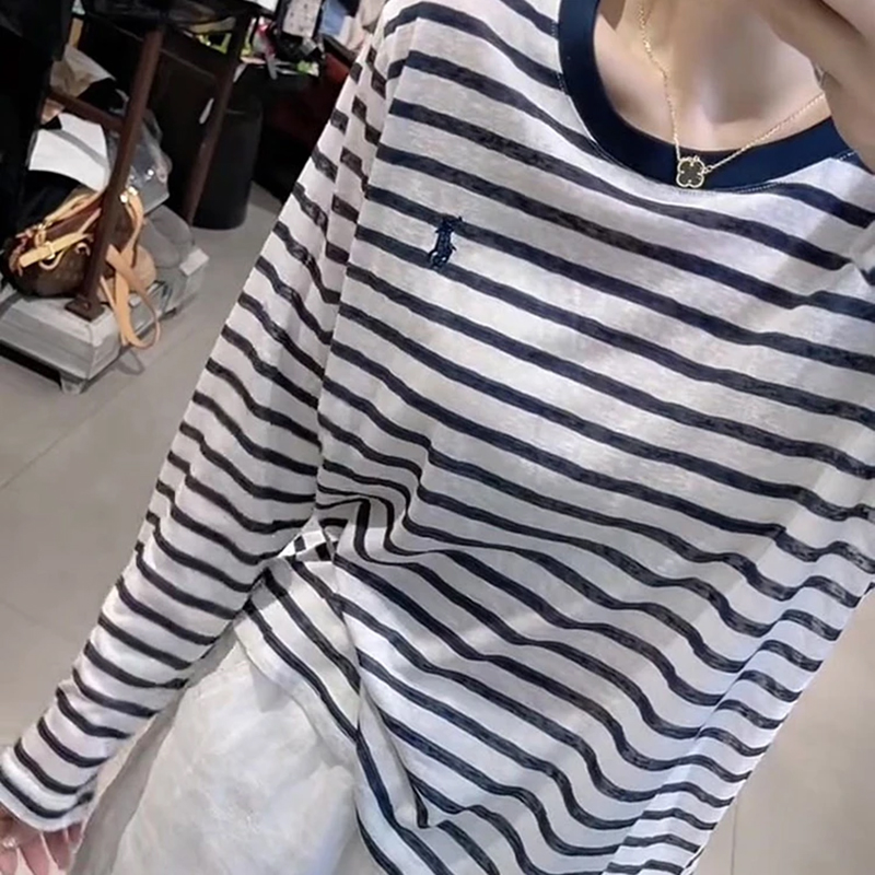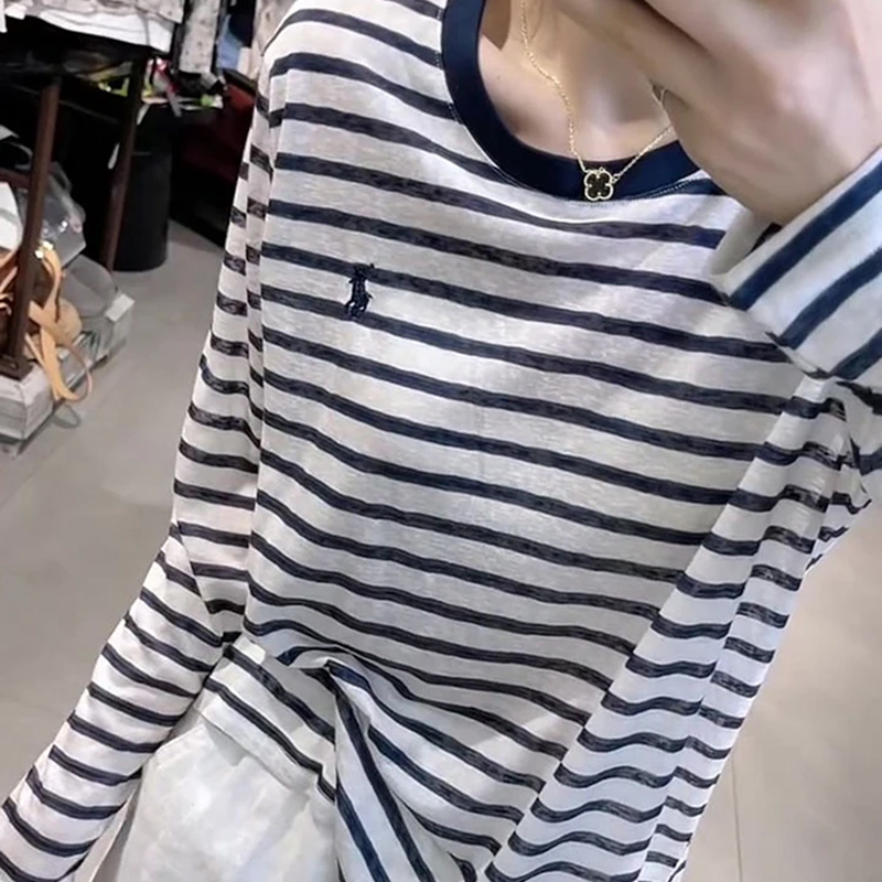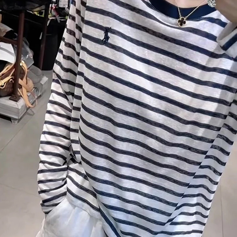 胖mm显瘦宽松慵懒风薄款 大码 早秋单穿条纹上衣 t恤女2025新款 长袖