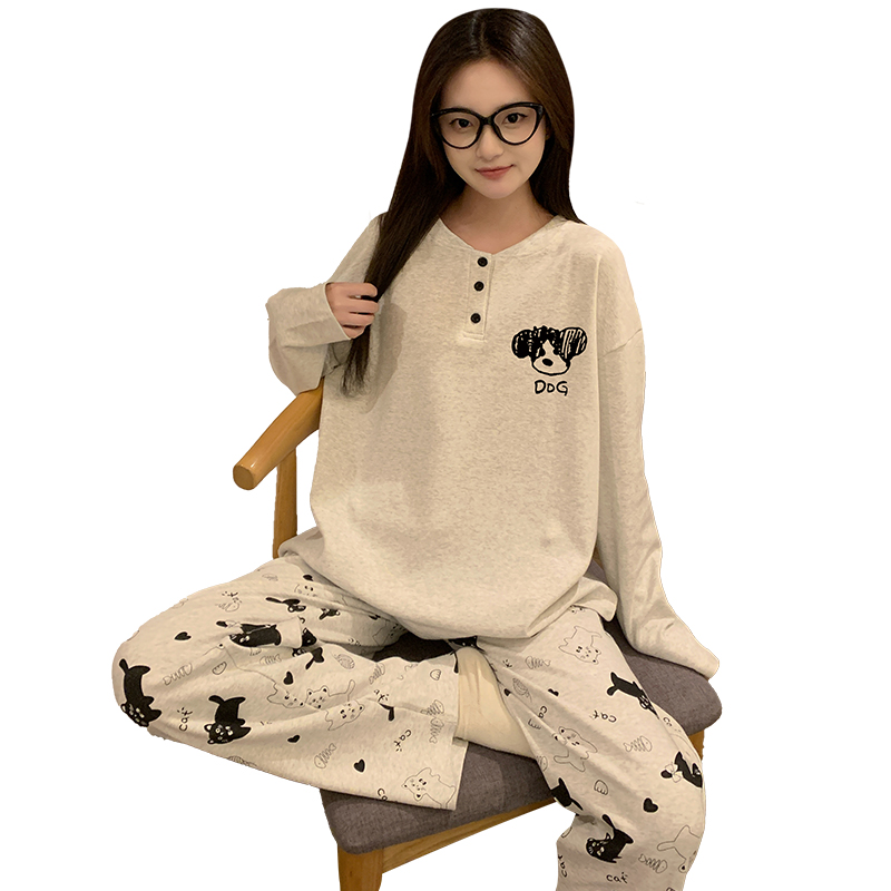 长袖 简约舒适家居服套装 长裤 夏季 可外穿 2025新款 纯棉睡衣女春秋季