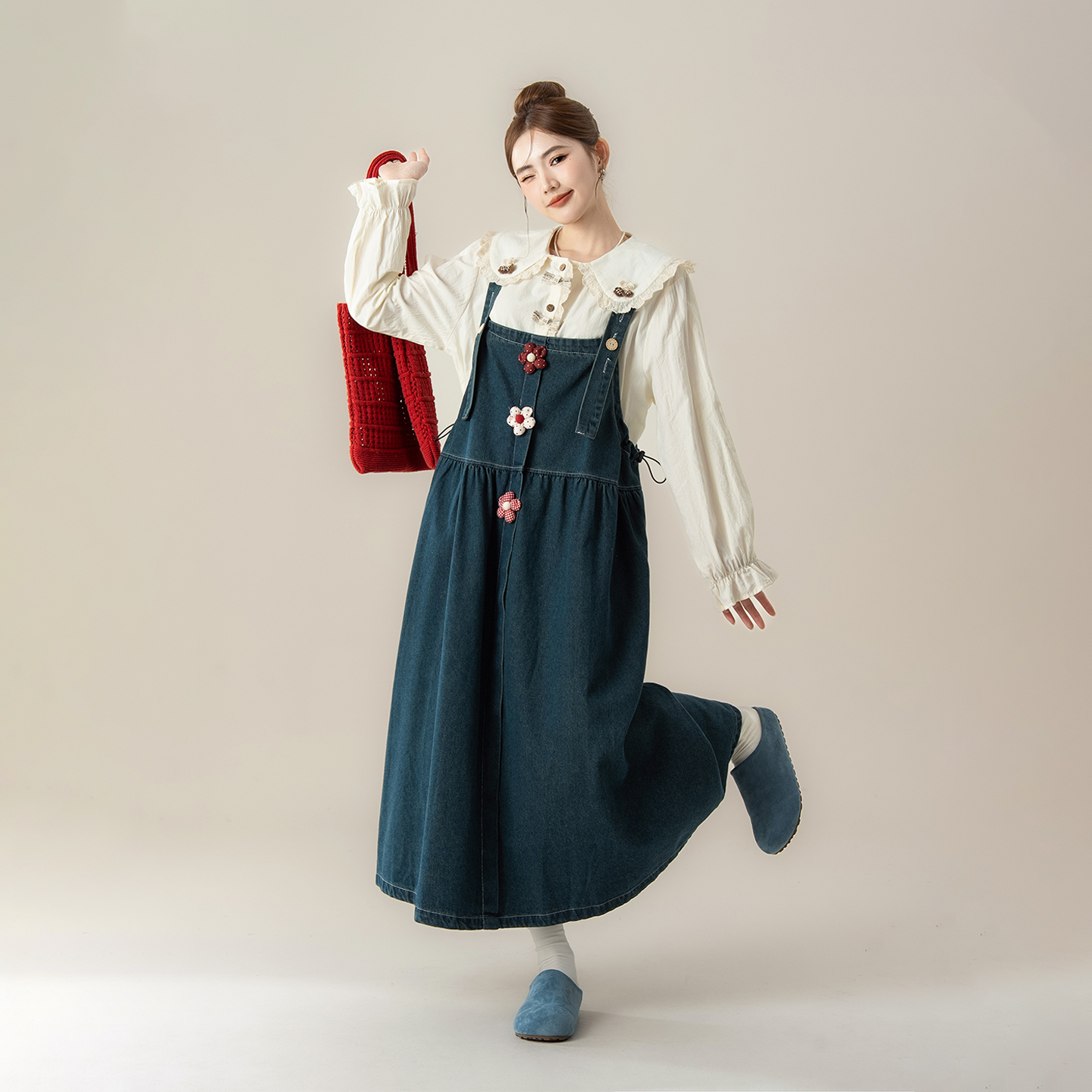 宽松显瘦连体阔腿裤 减龄牛仔背带裤 奶系韩版 2025年新款 女春夏秋季