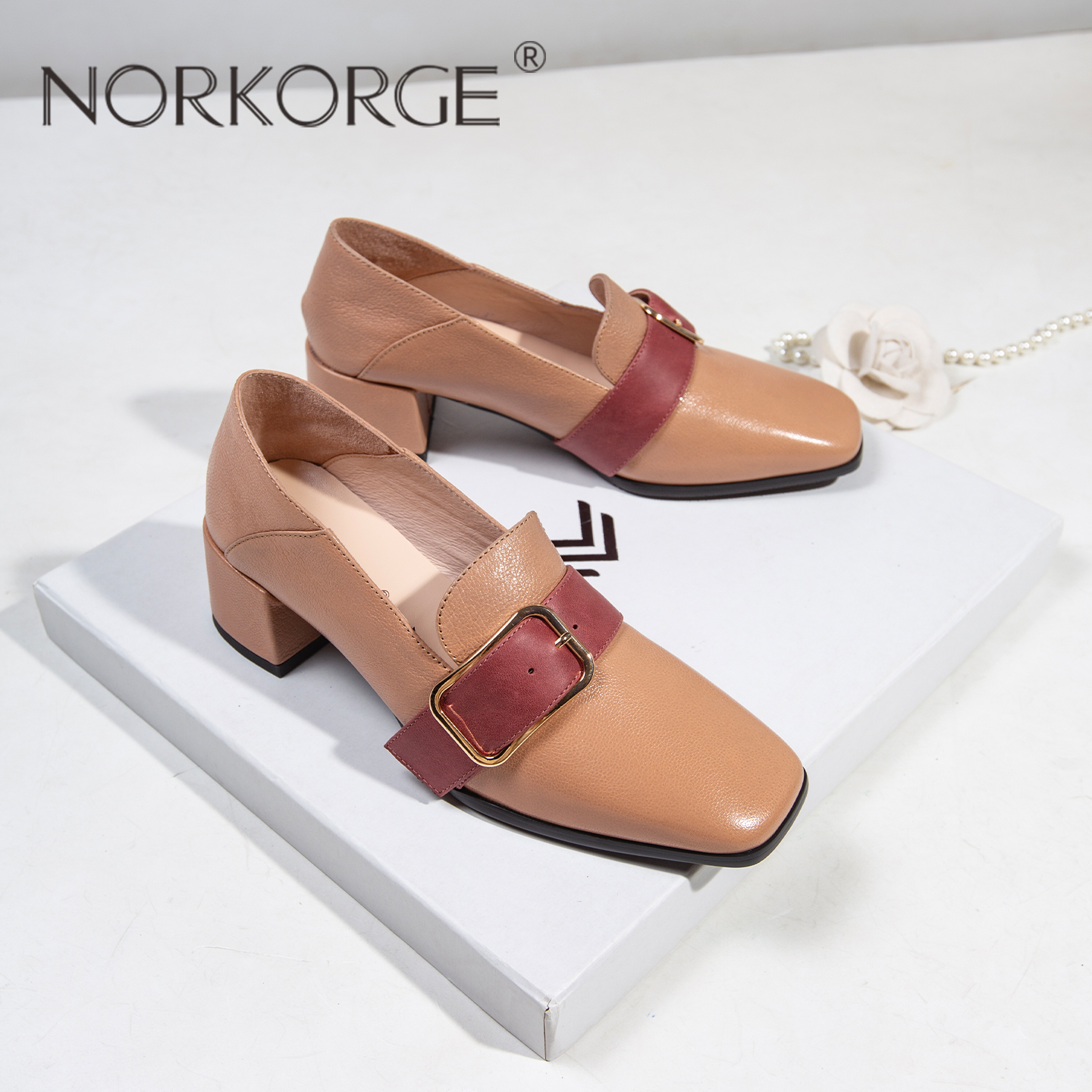乐福鞋 2025新款 女鞋 粉气质方头中粗跟通勤单鞋 春秋复古文艺小皮鞋