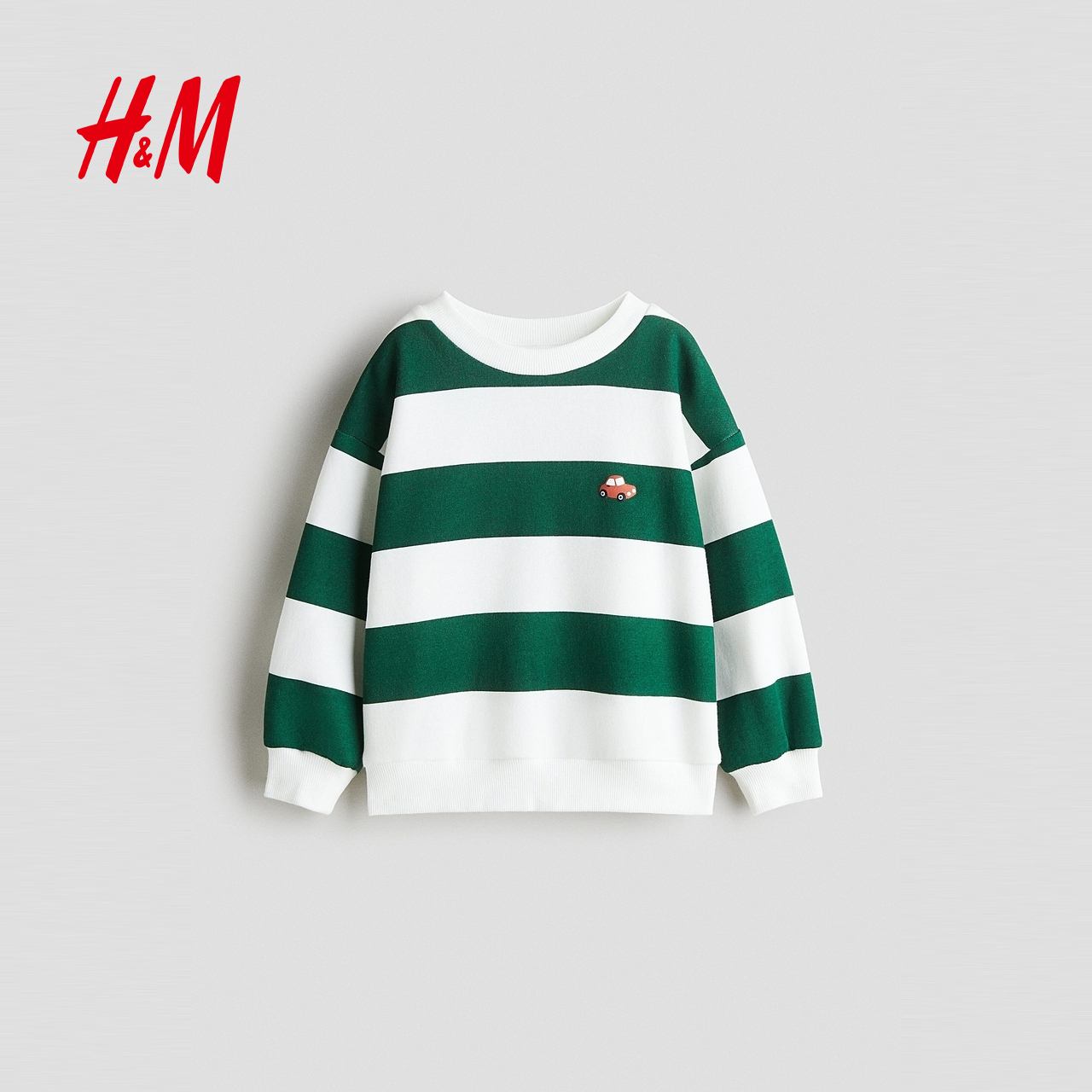上衣绒衫 HM童装 条纹印花圆领长袖 新款 1308148 男童卫衣2025年秋季